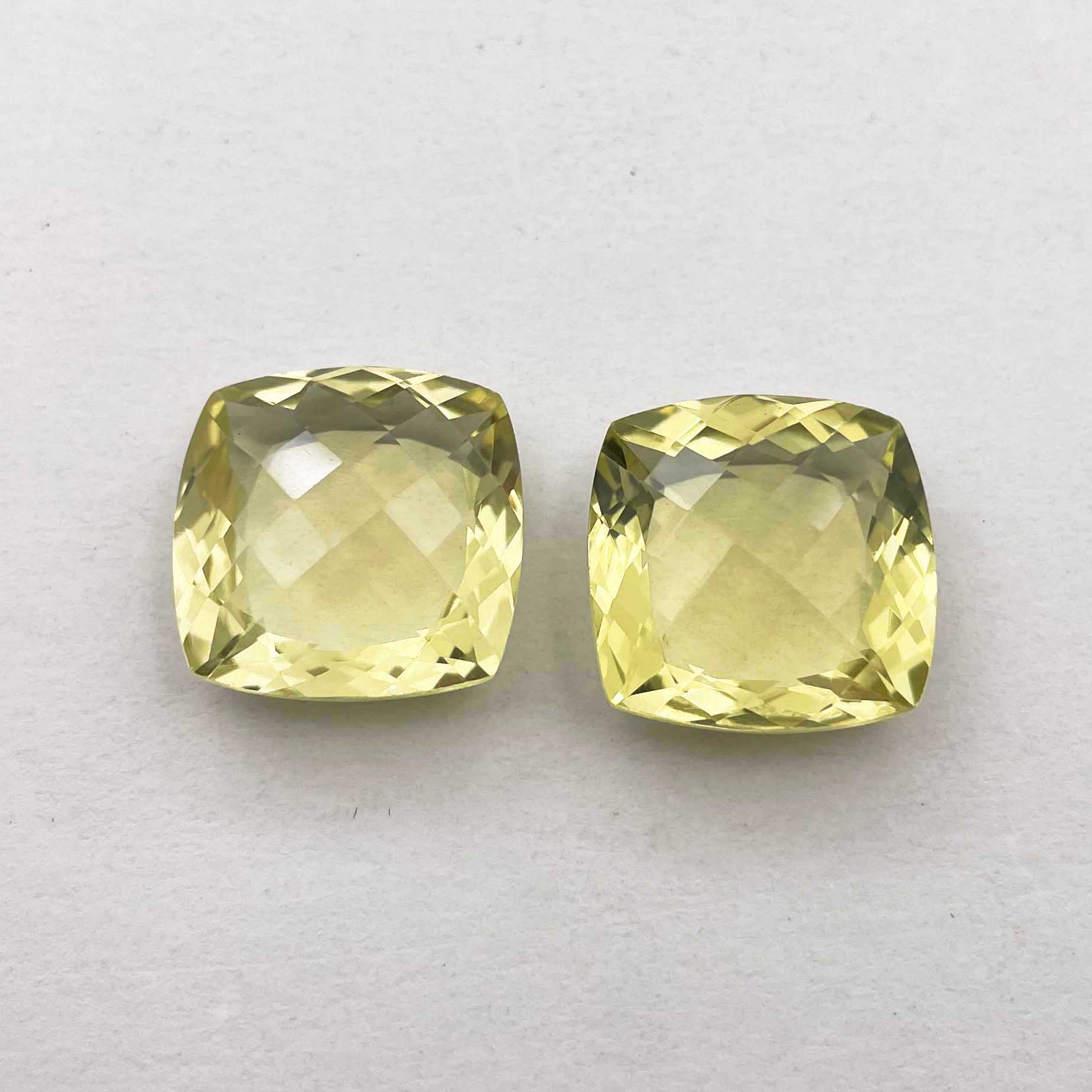 Natural Lemon Quartz Square Cushion Checker Cut Loose Stone Lot 2 Pcs 18 MM 42CT