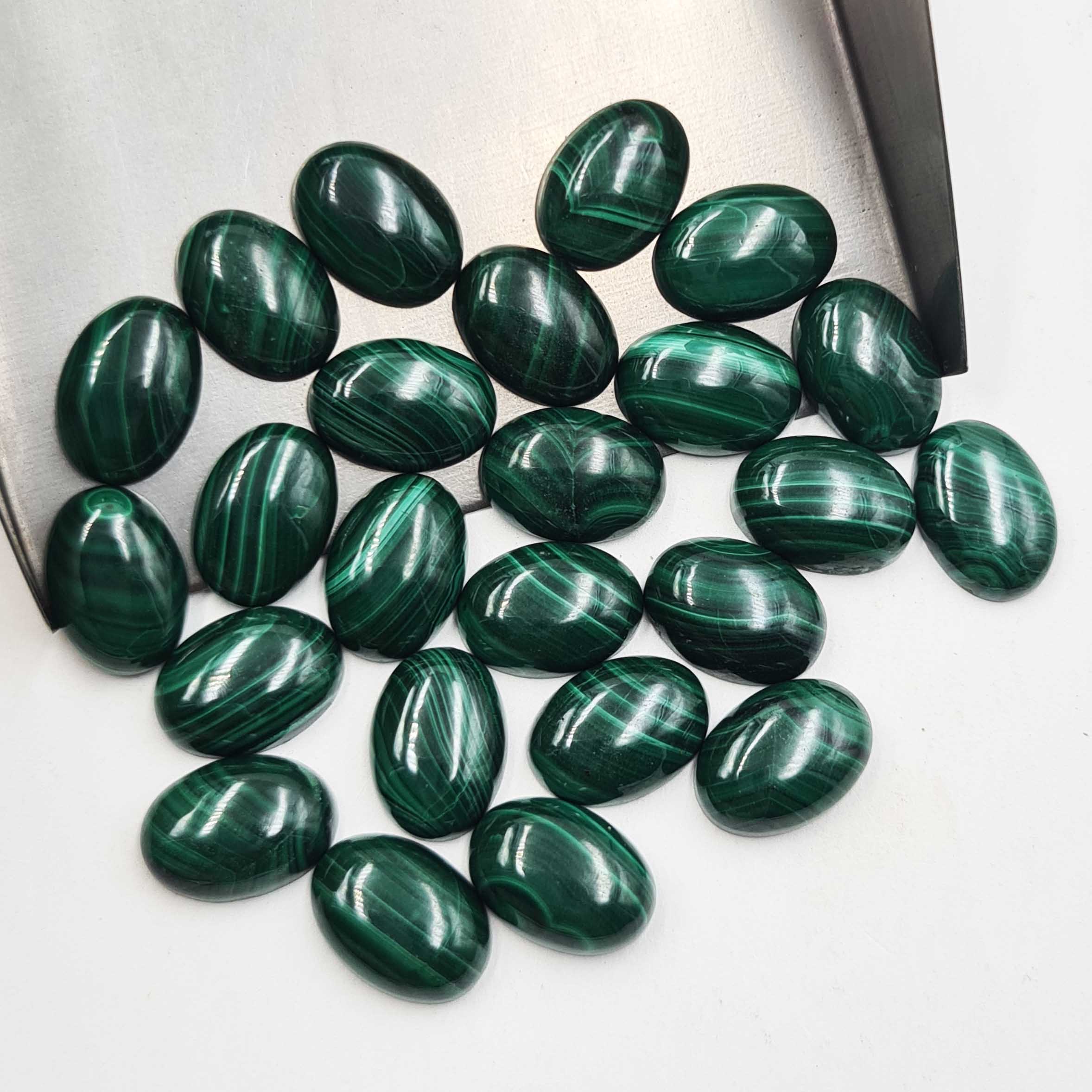 Home Malachite Natural Malachite Oval Cabochon Loose Gemstone Lot 14 Pcs 10*14 MM 103 CT