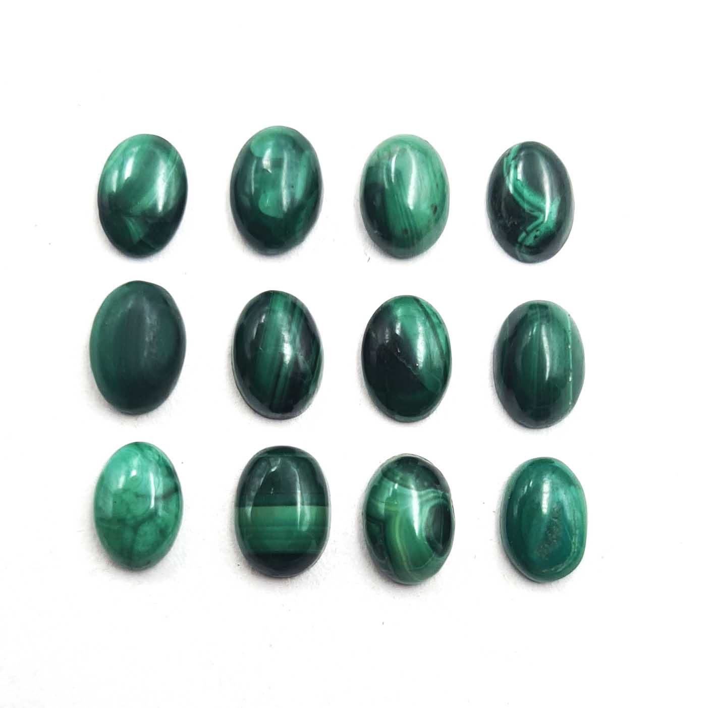 Natural Malachite Oval Cabochon Loose Gemstone Lot 14 Pcs 10*14 MM 103 CT