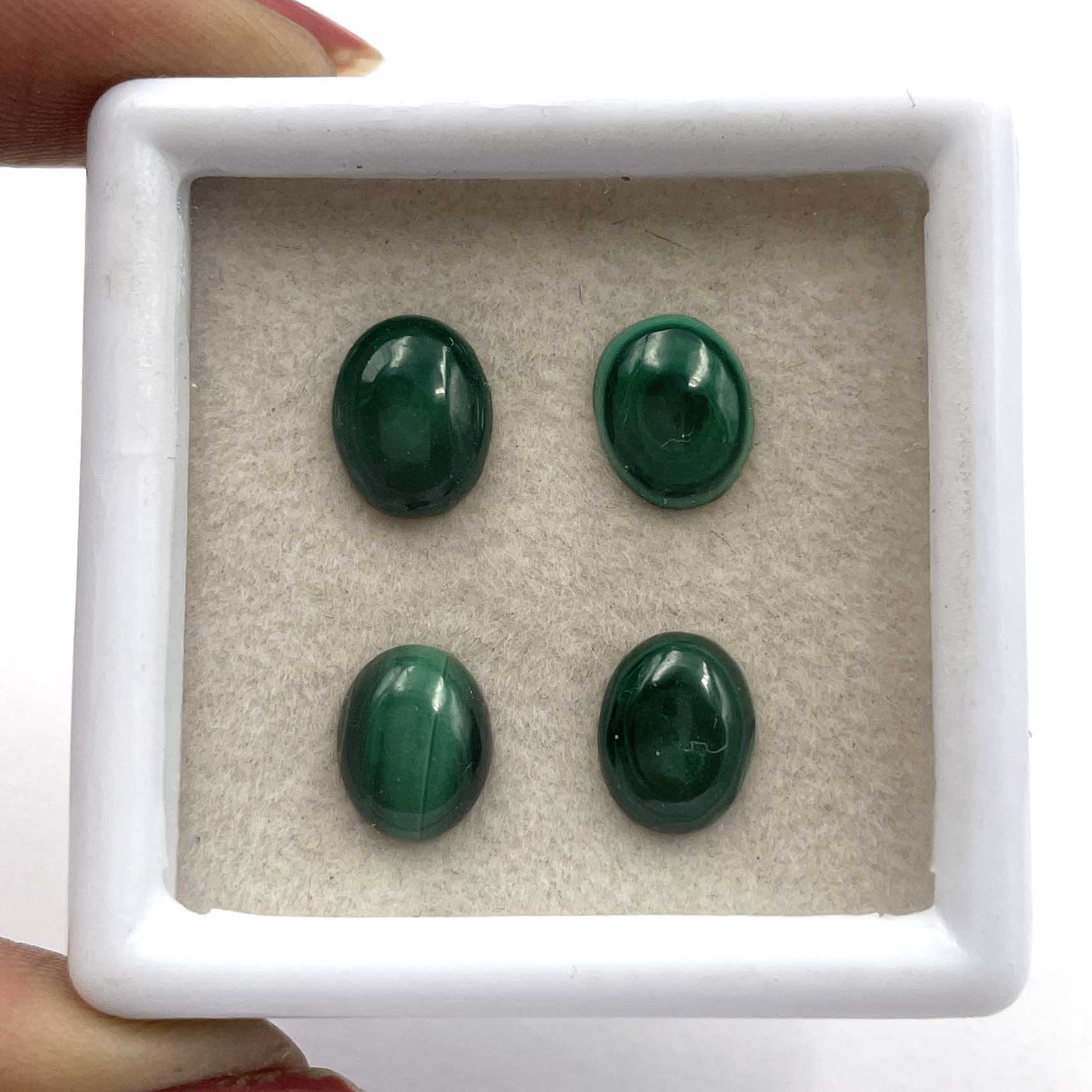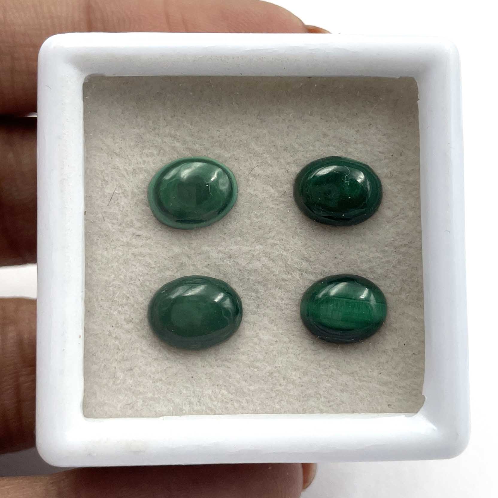 Natural Malachite Oval Cabochon Loose Stone 4 Pcs 7*9-7.5*9.5 MM 9.5 CT