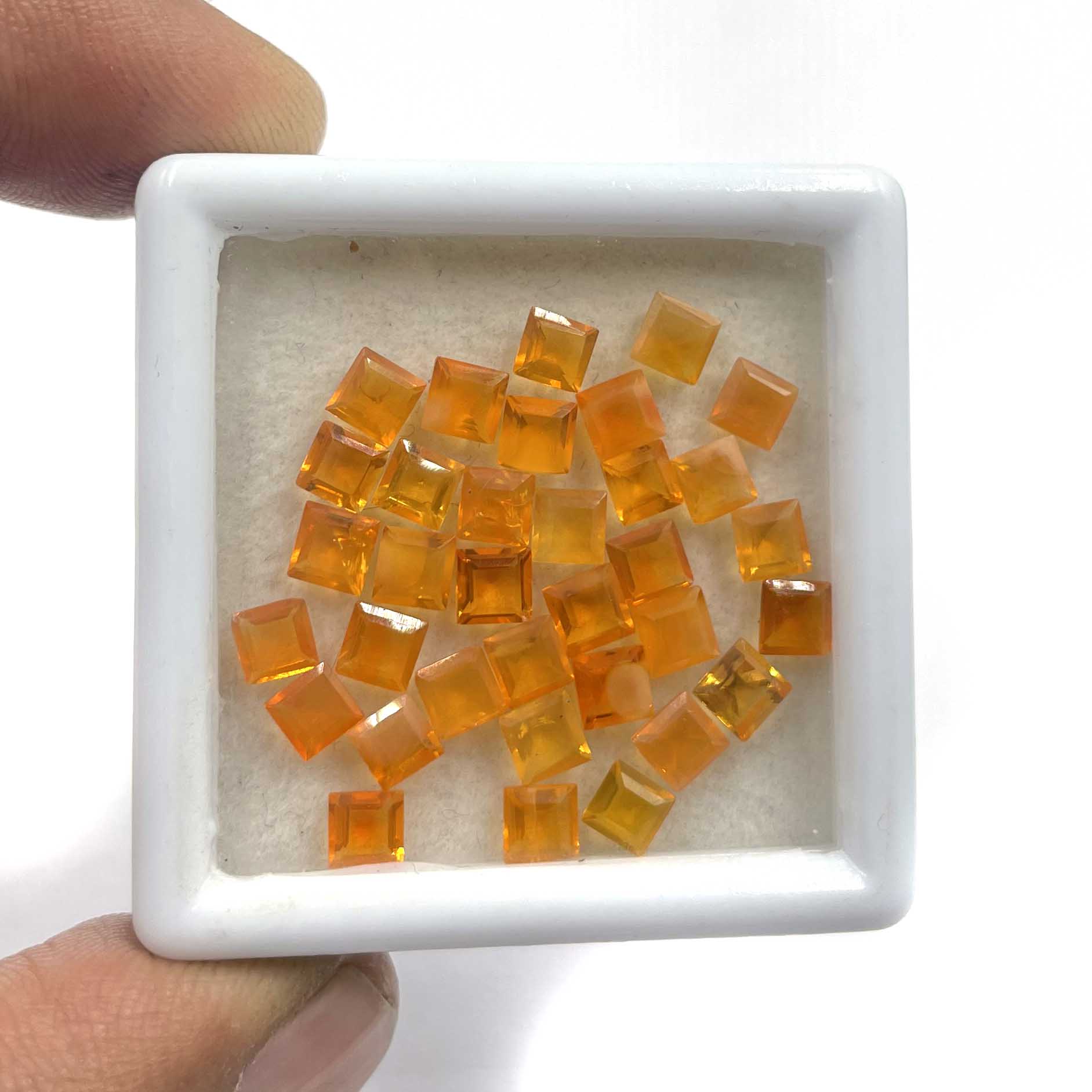 Home Opal Natural Mexican Fire Opal Square Cut Loose Gemstone Lot 34 Pcs 4 MM 7.5 CT