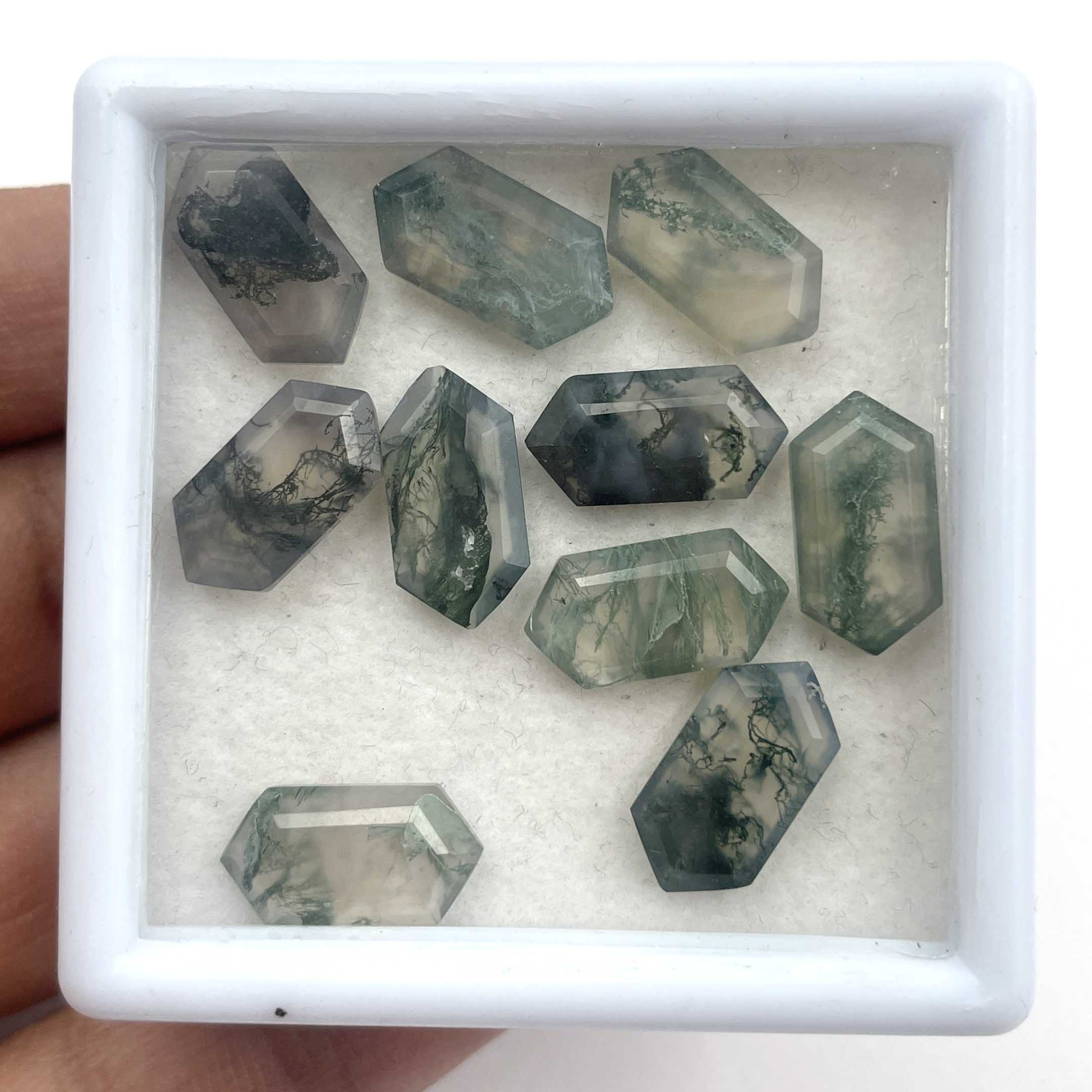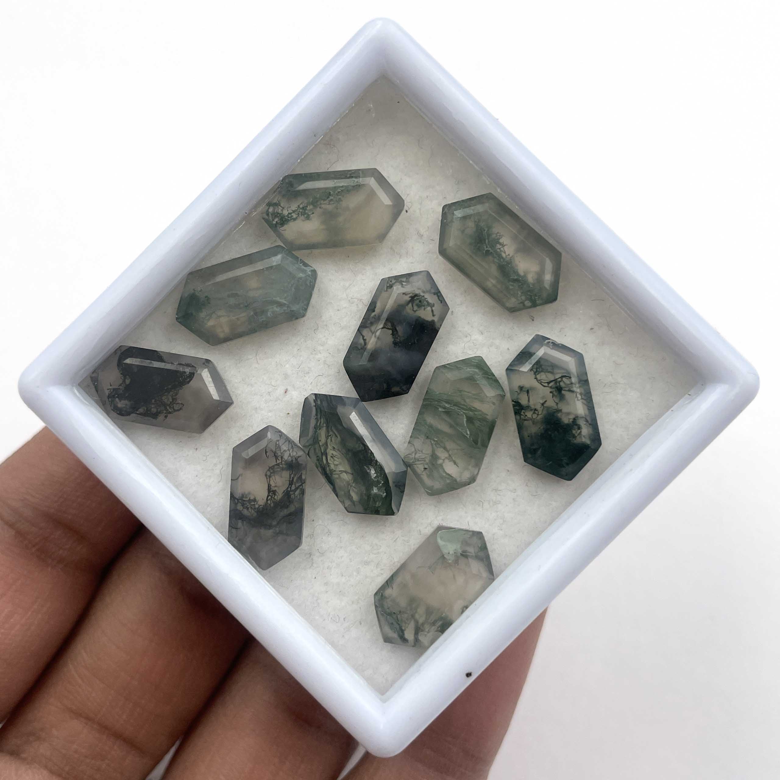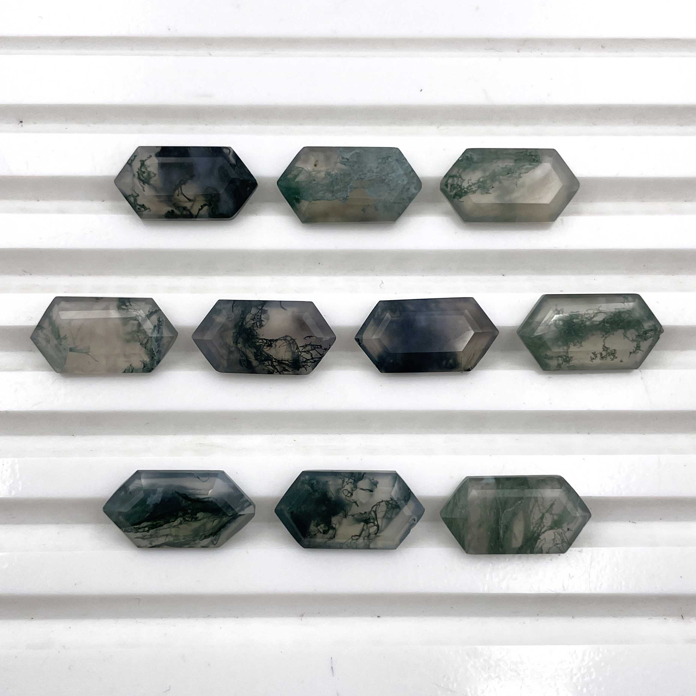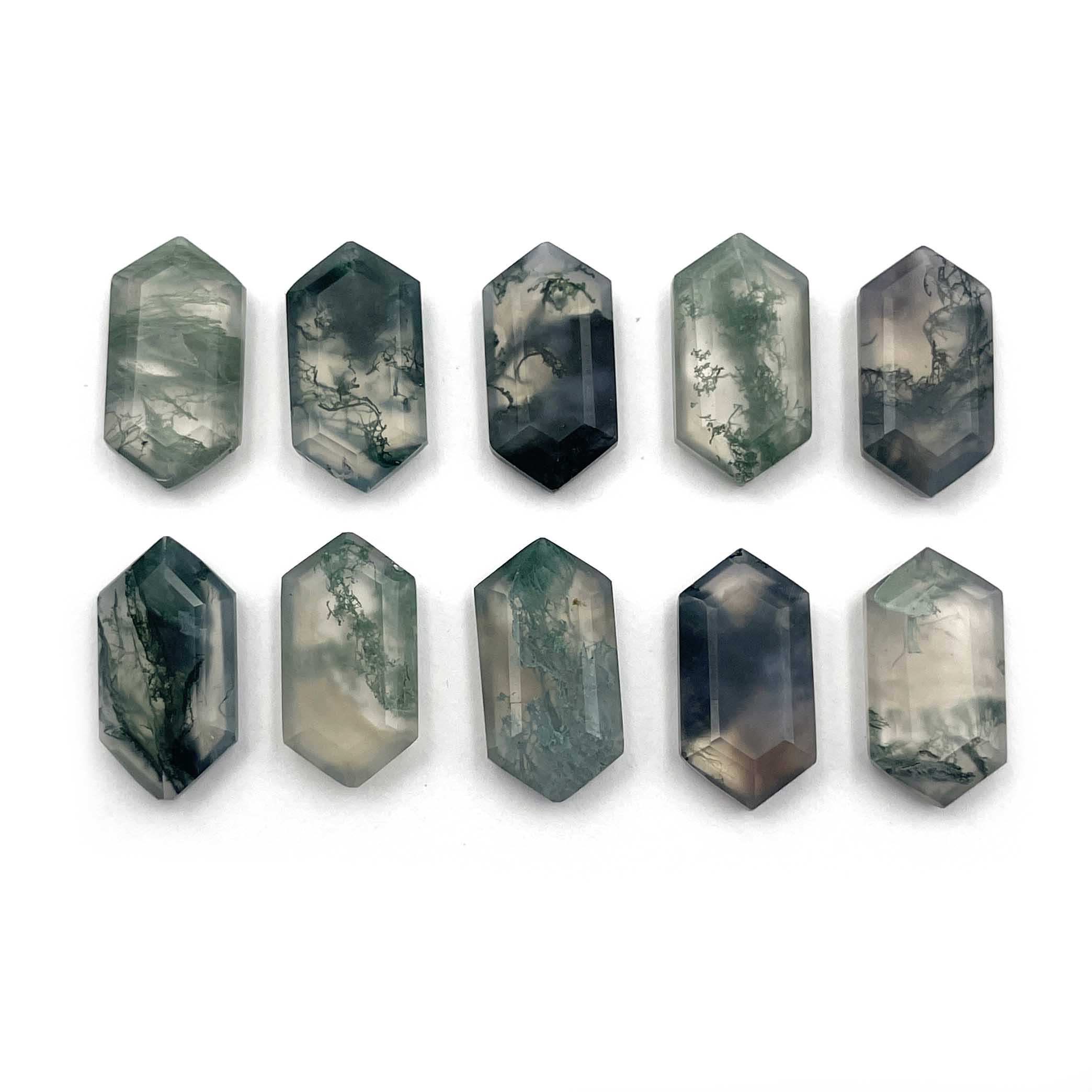 Home Other Gems Natural Moss Agate Hexagon Cut Loose Gemstone Lot 10 Pcs 7*14 MM 28.7 CT