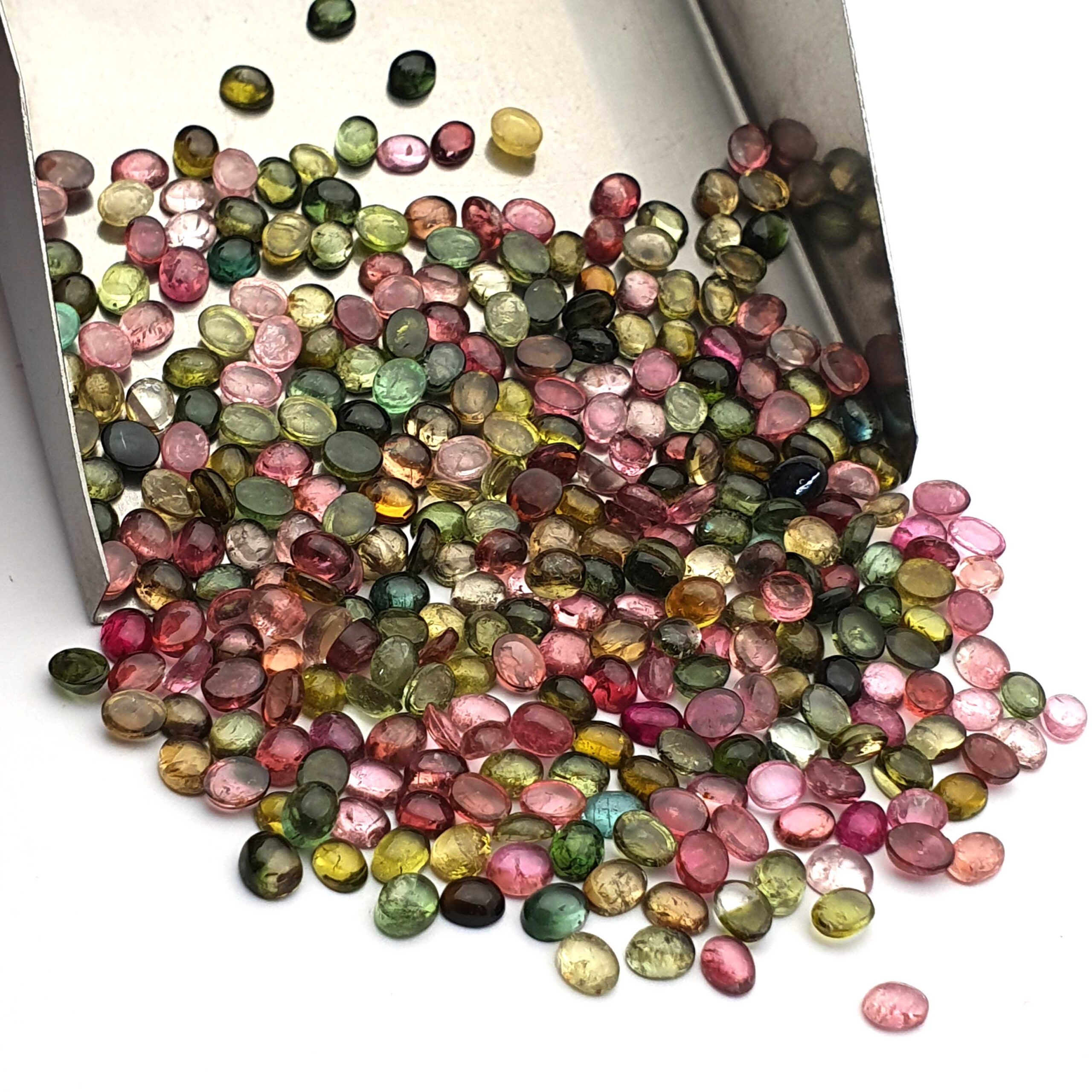 Natural Multi Tourmaline Cabochon Oval Loose Gemstone Lot 55 Pcs 4×5 MM 23 CT