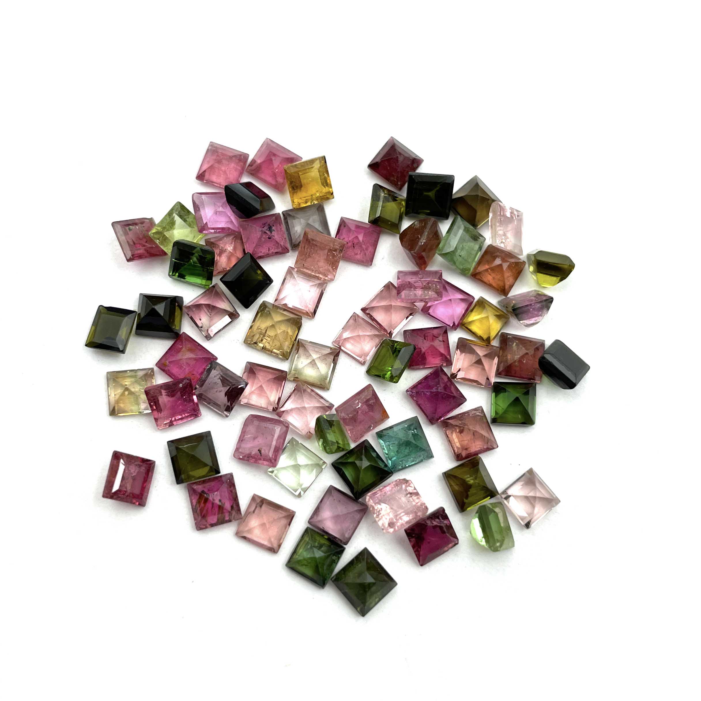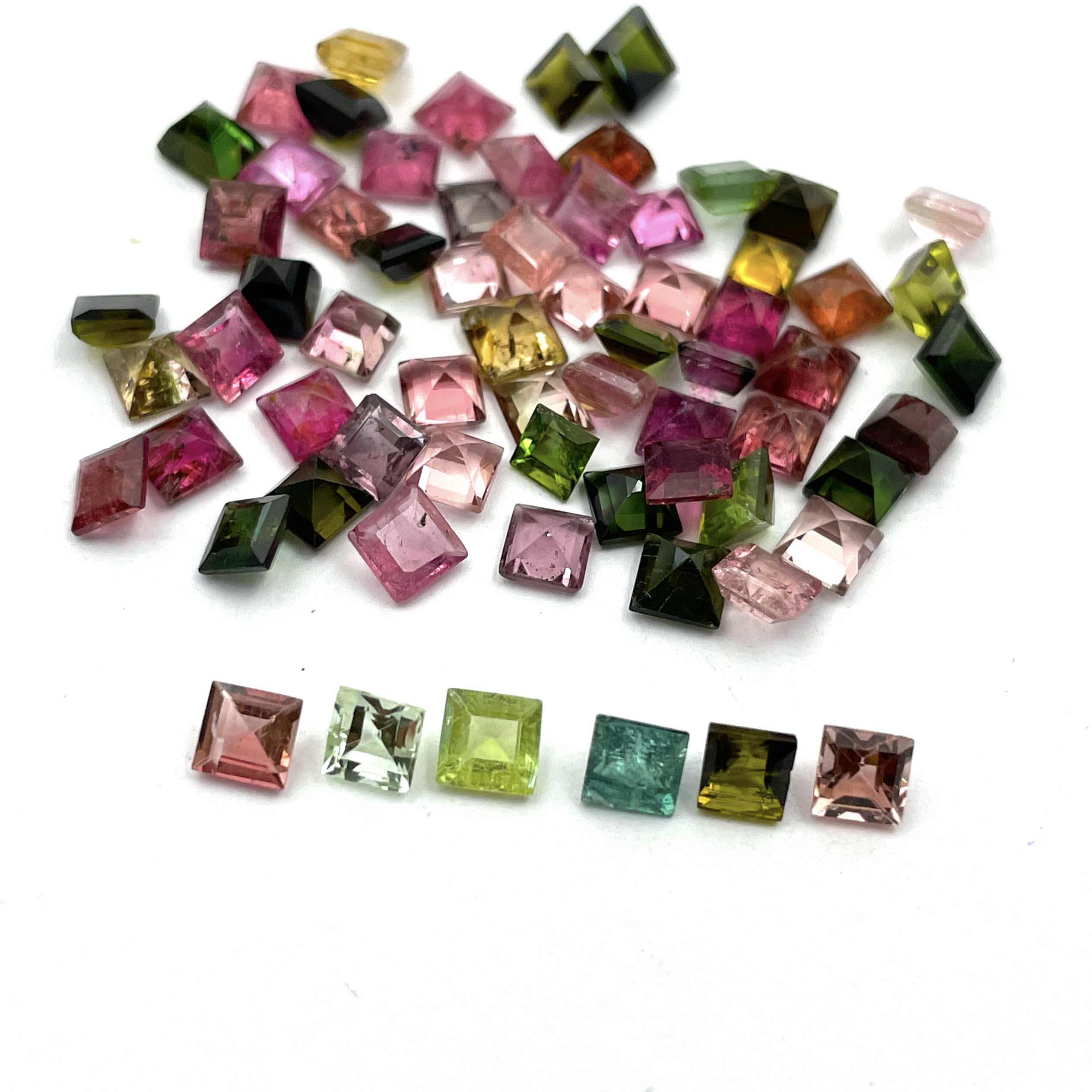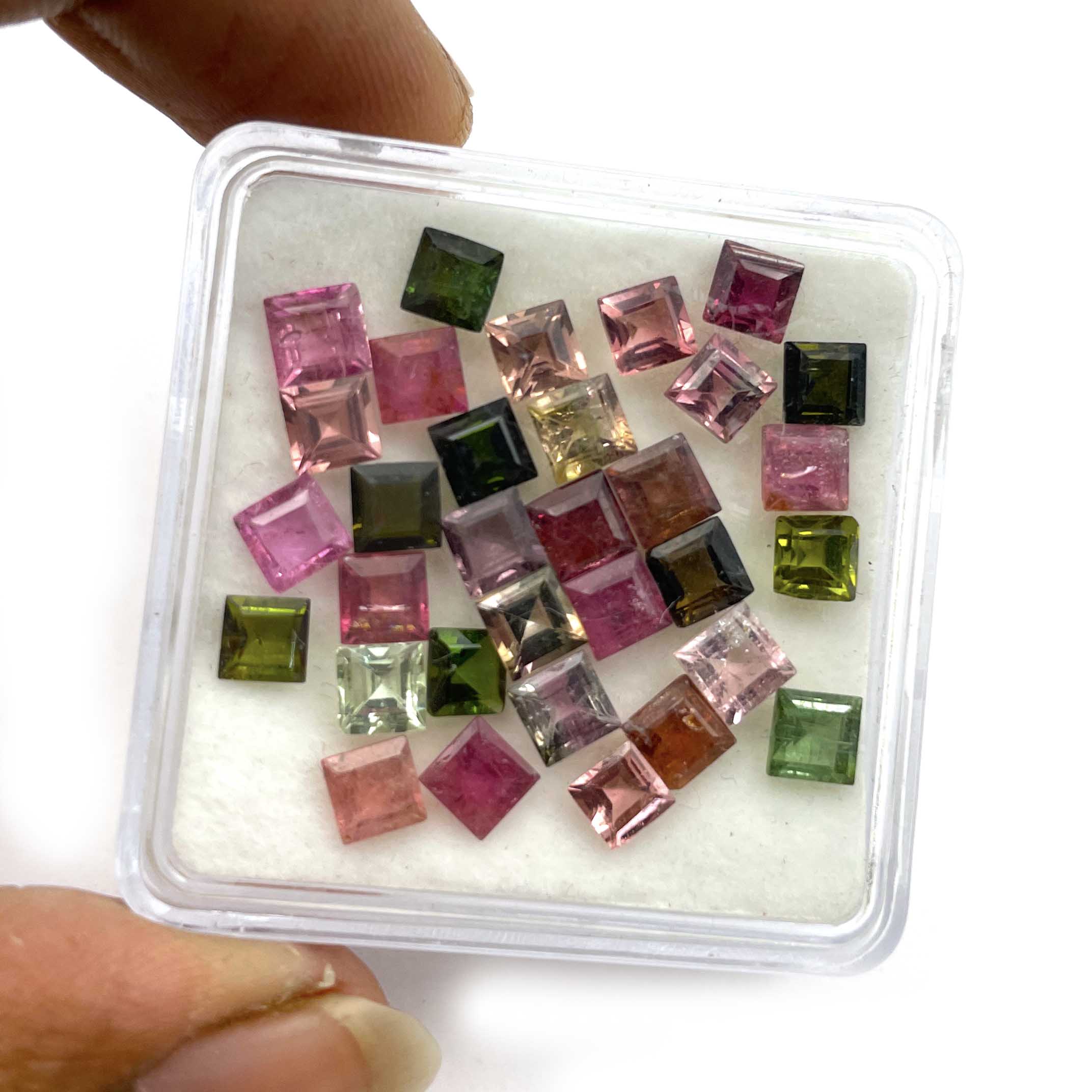 Natural Multi Tourmaline Square Cut Loose Gemstone Lot 34 Pcs 4 MM 10 CT