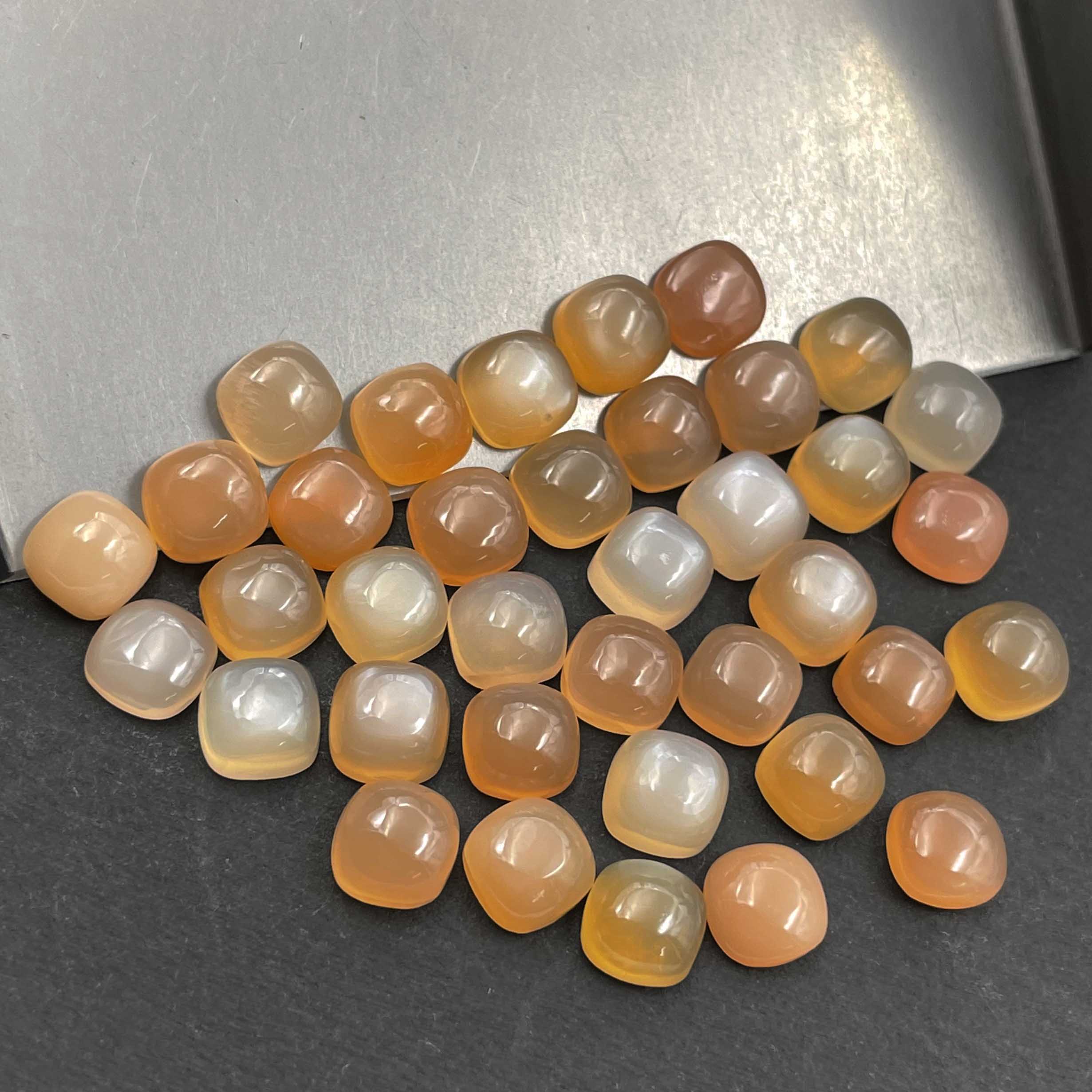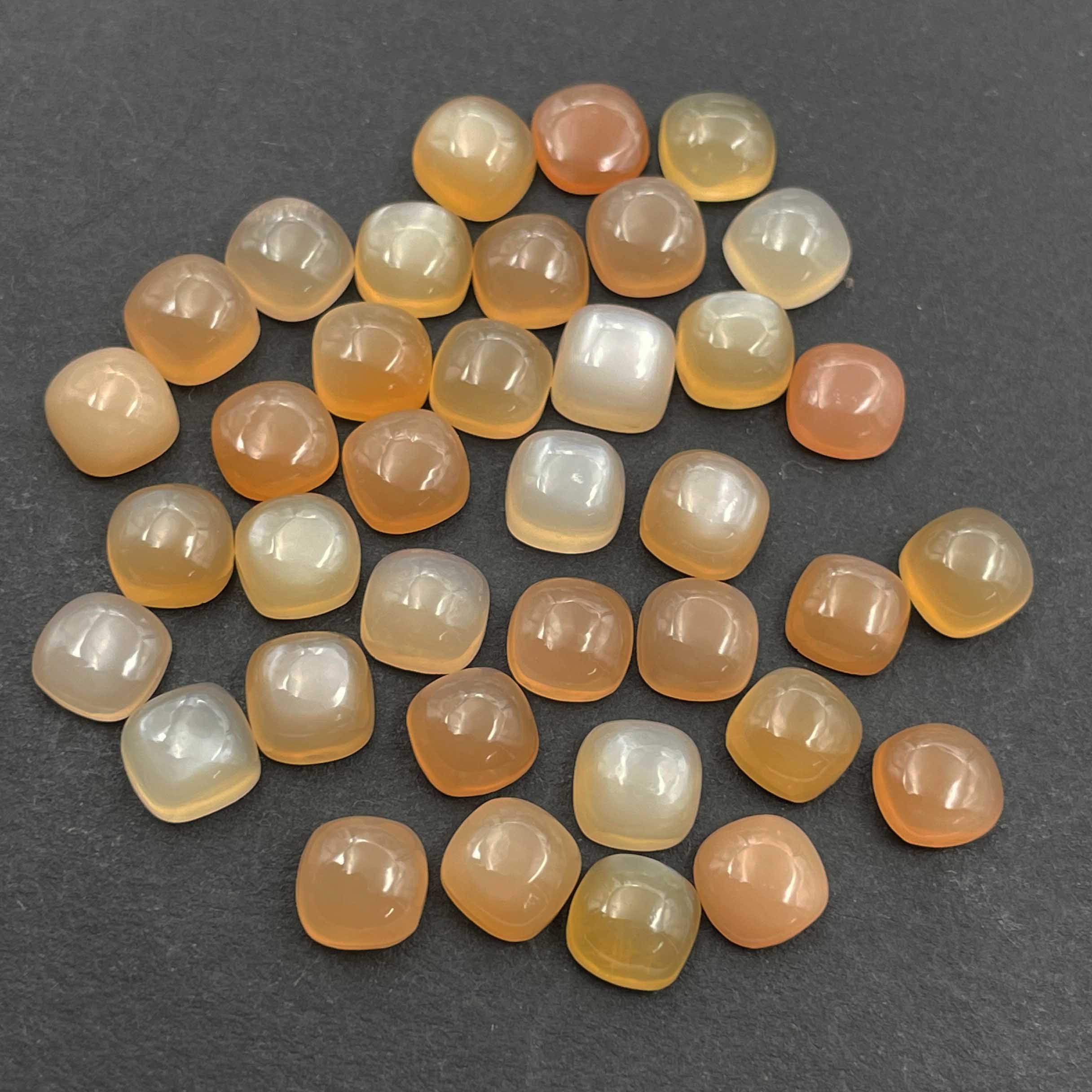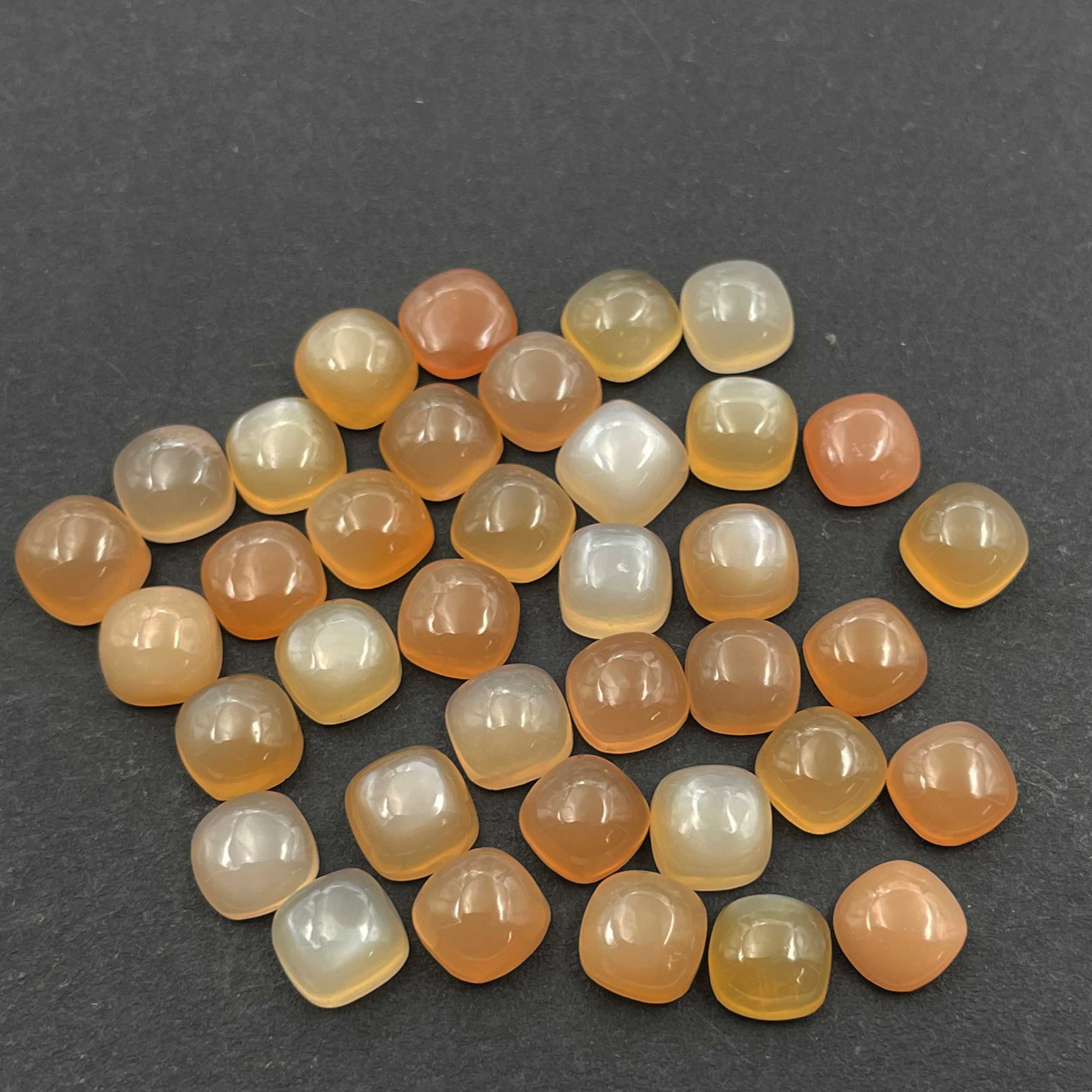 Natural Peach Moonstone Cushion Cabochon Loose Stone Lot 37 Pcs 7 MM 57 CT
