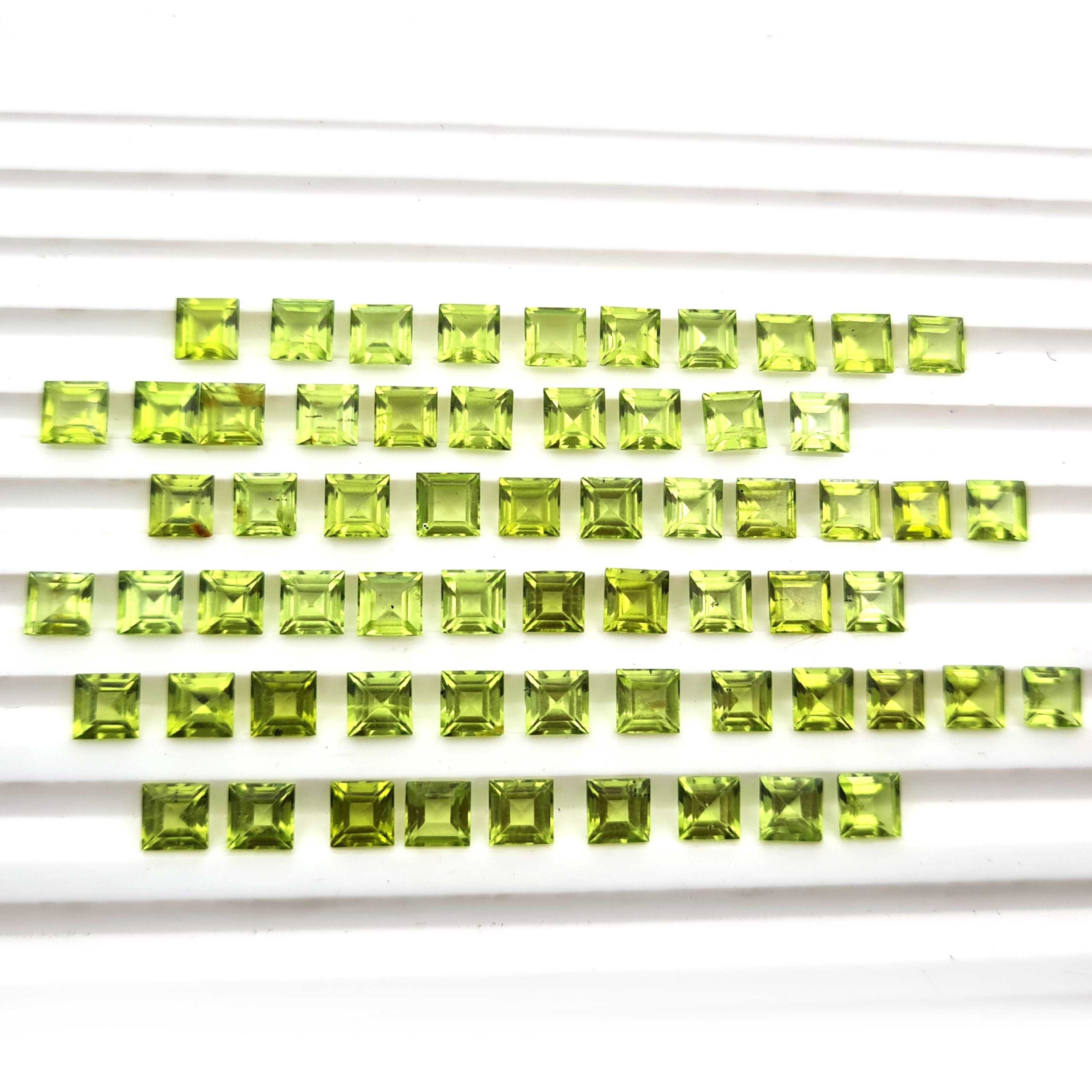 Natural Peridot Loose Square Cut Gemstone 4.5 MM 33 CT 63 Pcs
