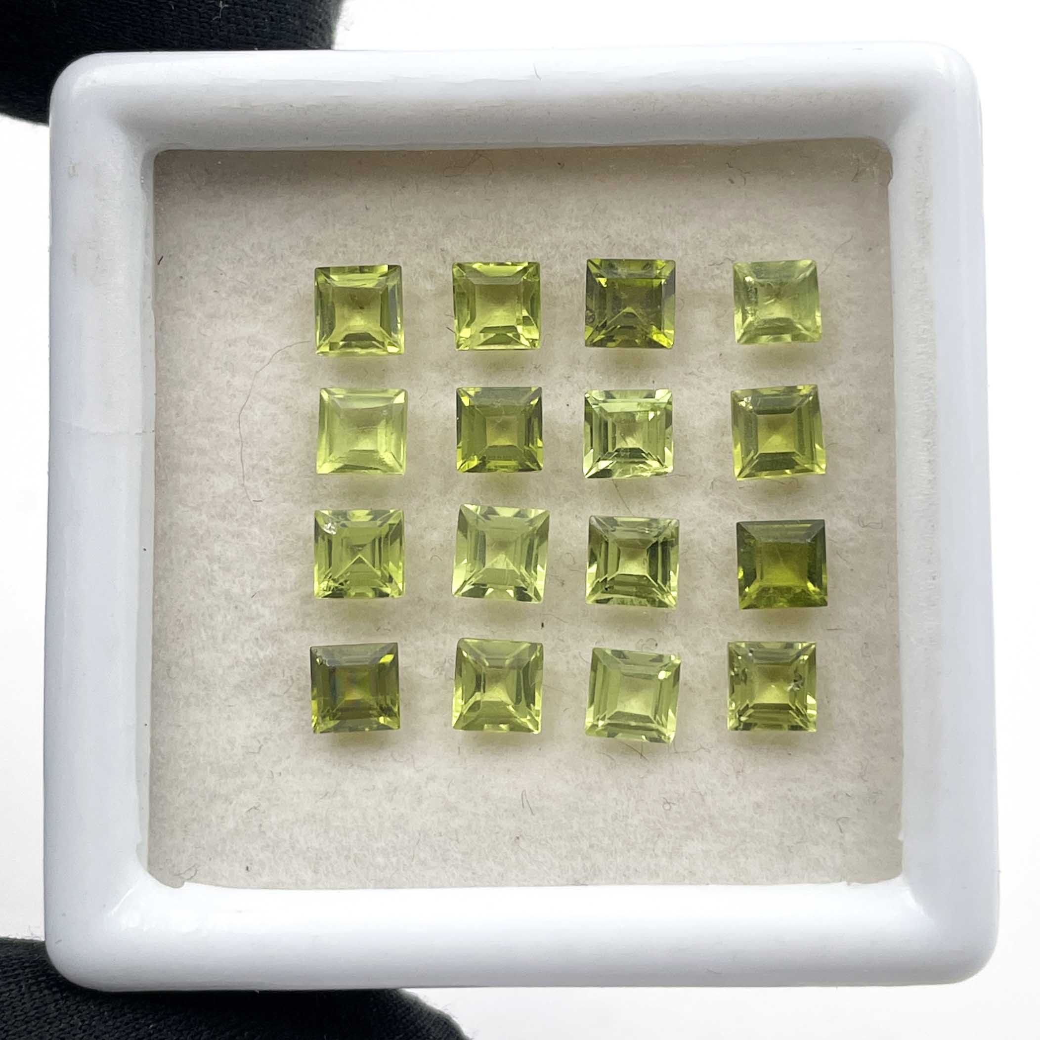 Home Peridot Natural Peridot Square Cut Loose Gemstone Lot 19 Pcs 4 MM 7 CT