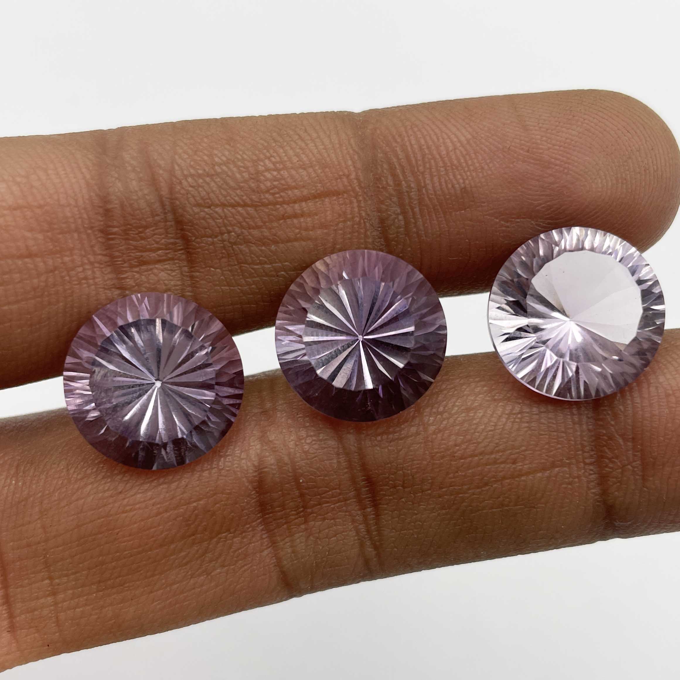 Home Amethyst Natural Pink Amethyst Round Concave Cut Loose Gemstone Lot 3 Pcs 14 MM 30.5 CT