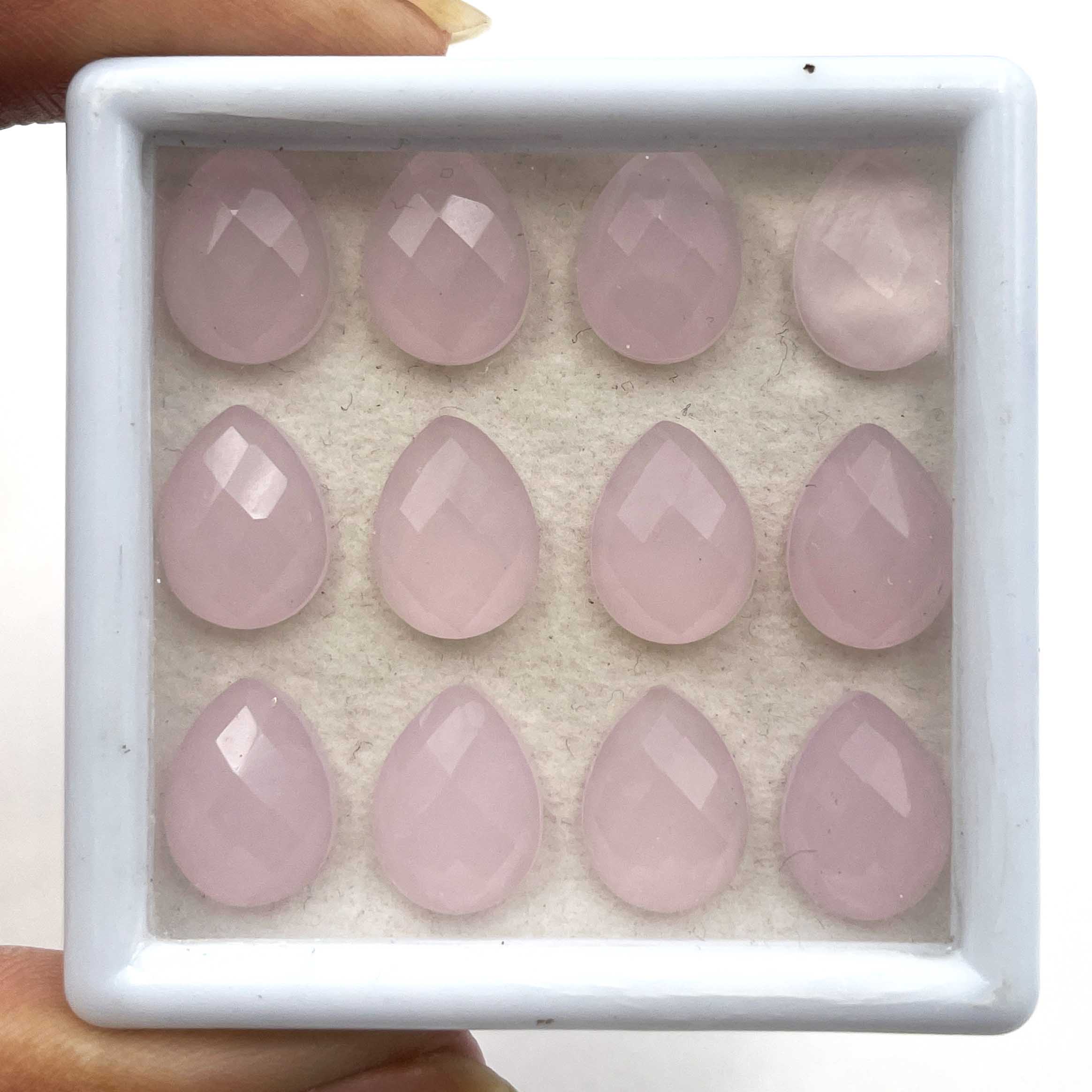 Home Chalcedony Natural Pink Chalcedony Pear Checker Cut Loose Gemstone Lot 17 Pcs 9*12 MM 58 CT