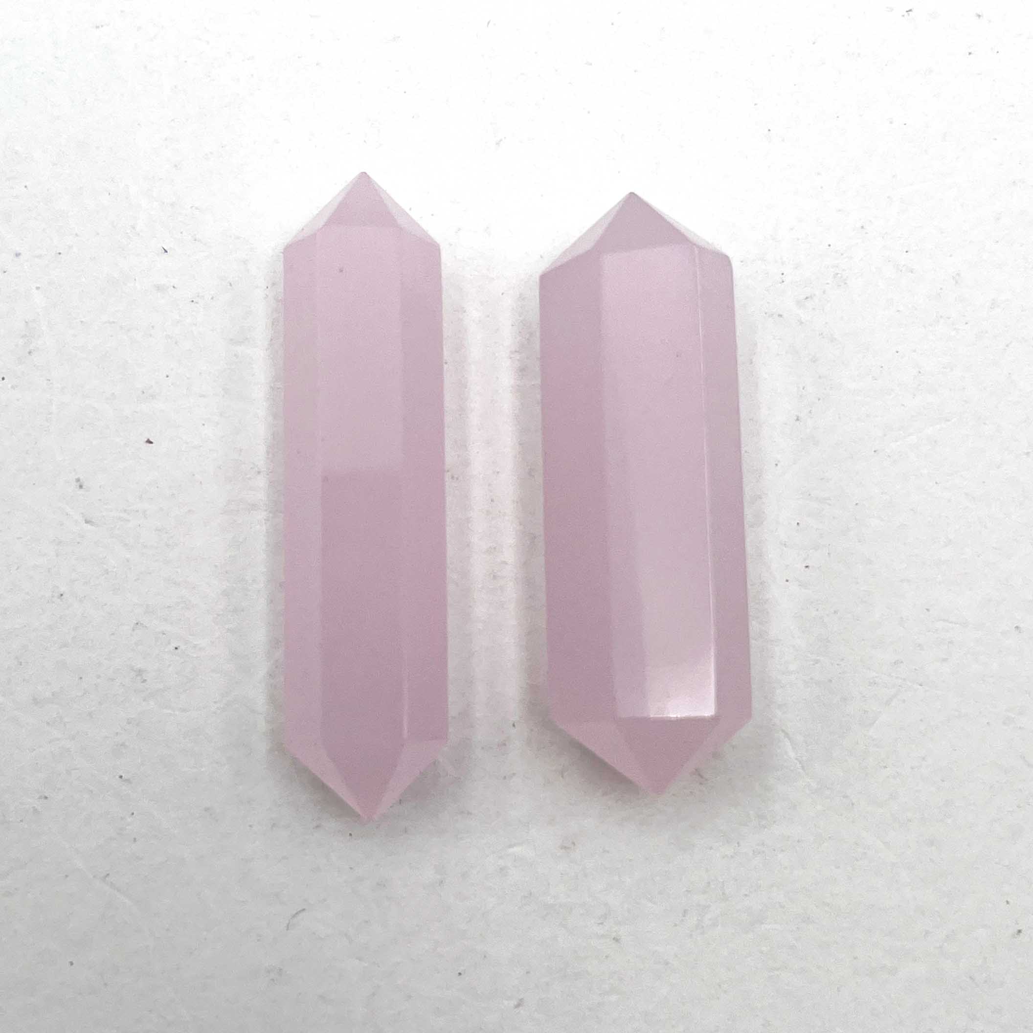 Home Chalcedony Natural Pink Chalcedony Pencil Cut Gemstone Lot 2 Pcs 7.5*34.5-9.5*32 MM 43 CT