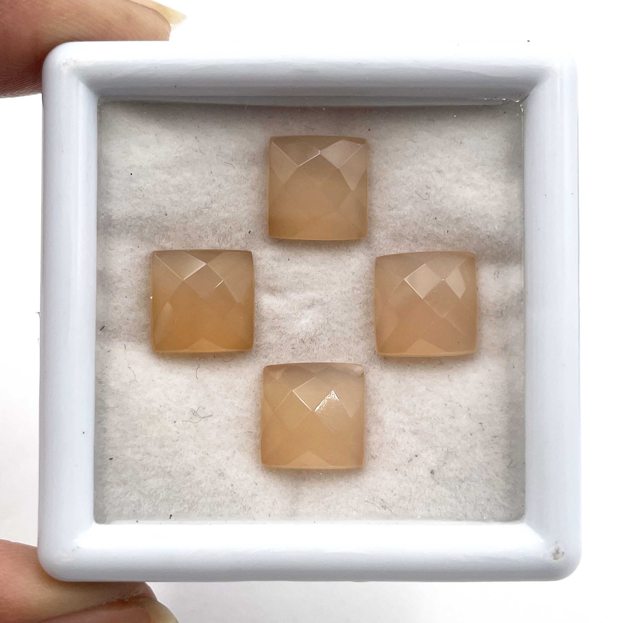 Home Chalcedony Natural Pink Chalcedony Square Checker Cut Loose Gemstone Lot 4 Pcs 10 MM 16 CT