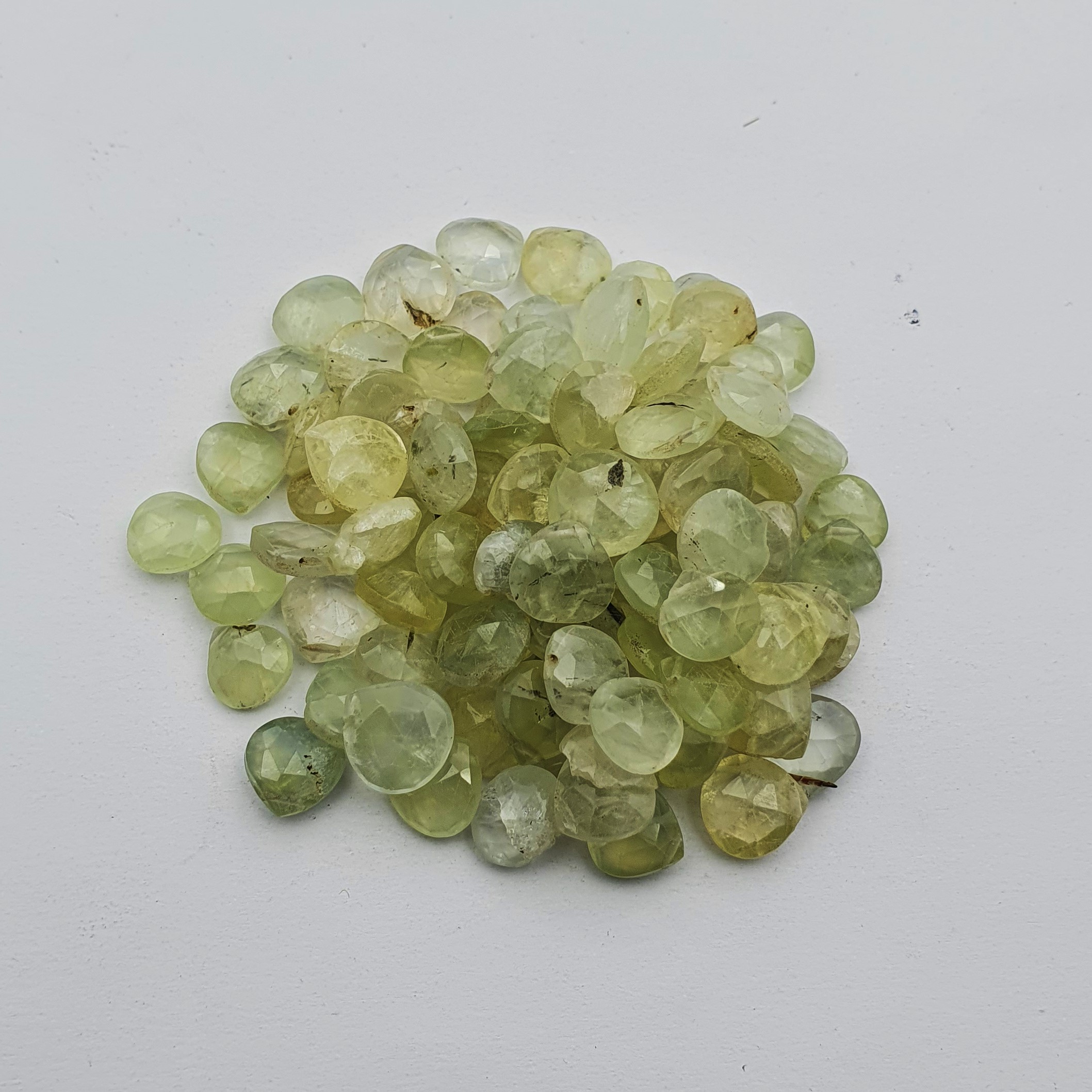 Home Prehnite Natural Prehnite Heart Checker cut 7-8 MM 92 CT 61 Pcs