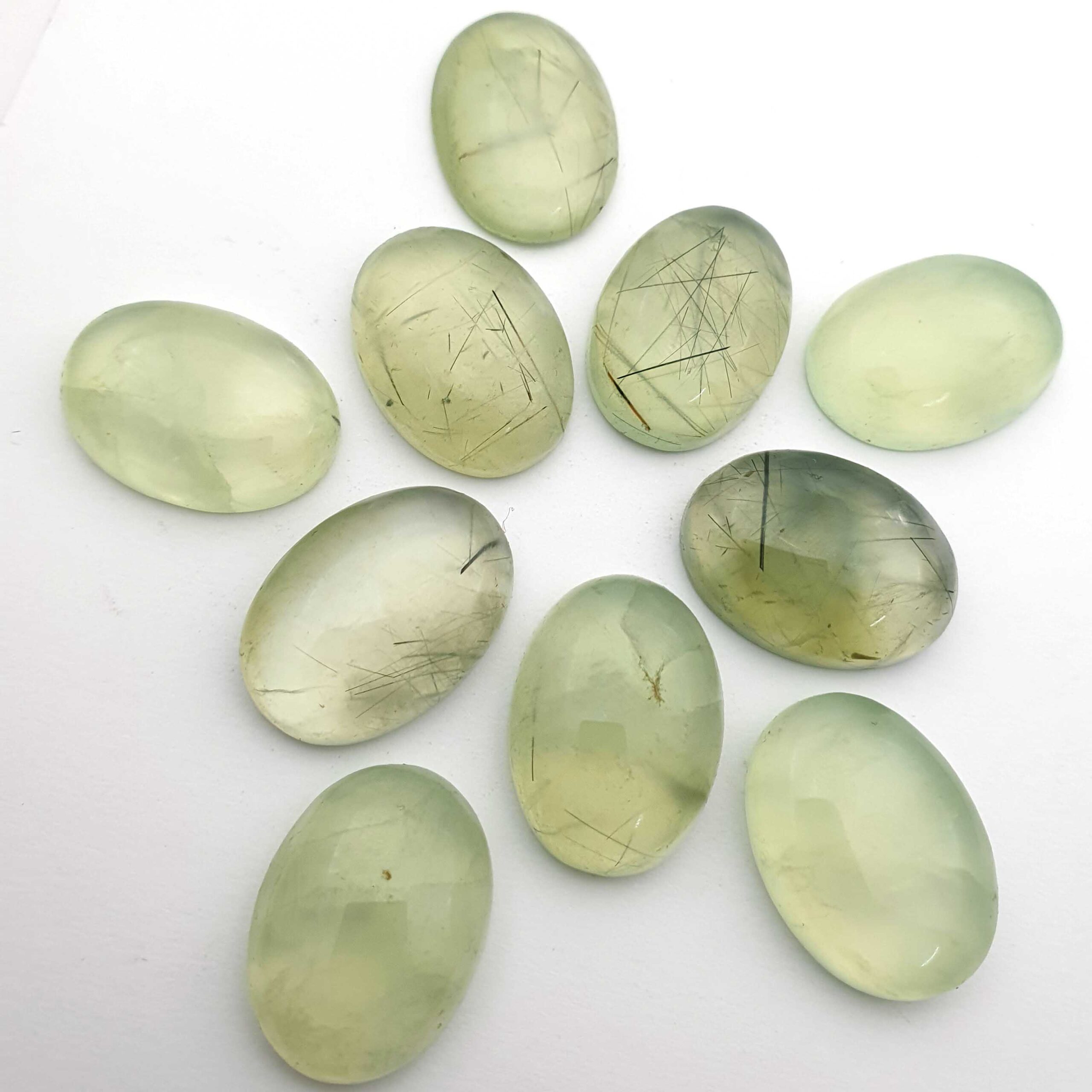 Natural Prehnite Oval One Side Checker Cut Stone 16 Pcs 10×13-10×14 MM 100 CT