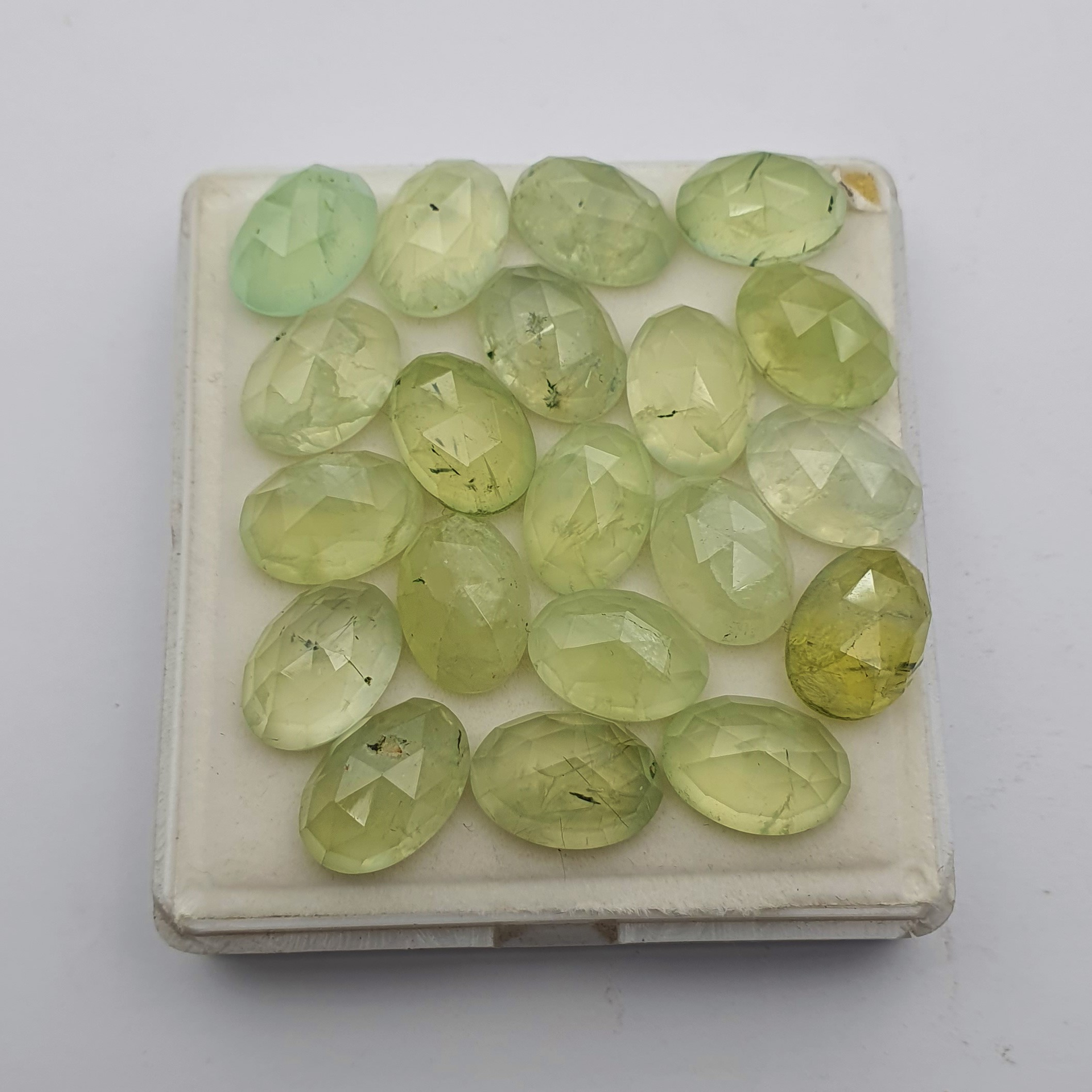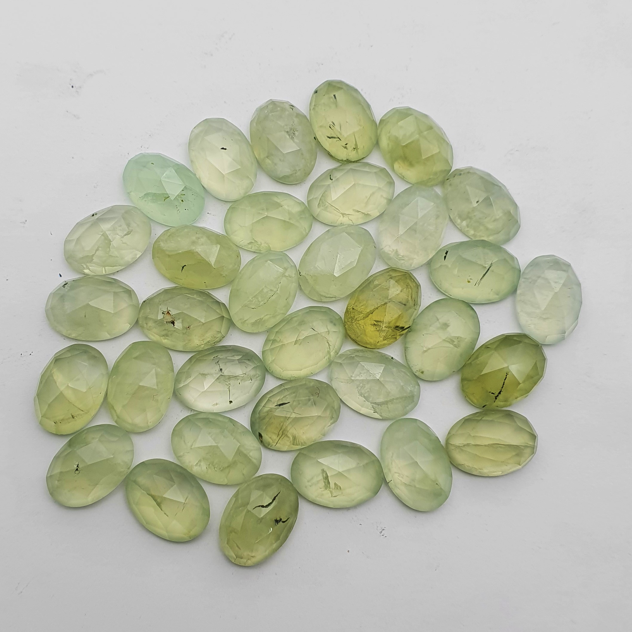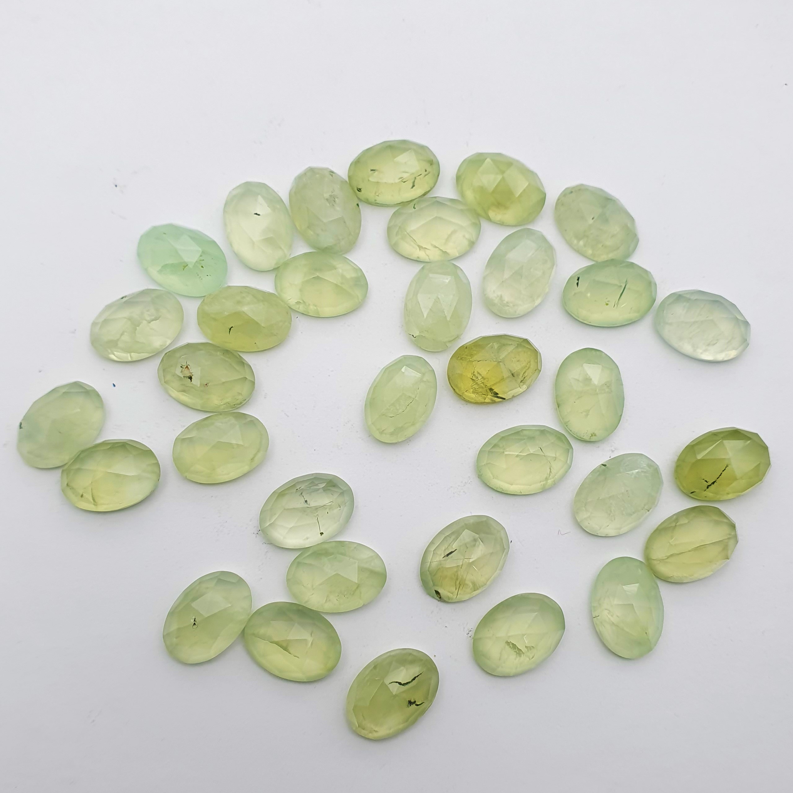 Home Prehnite Natural Prehnite Oval One Side Checker Cut Stone 16 Pcs 10×13-10×14 MM 100 CT
