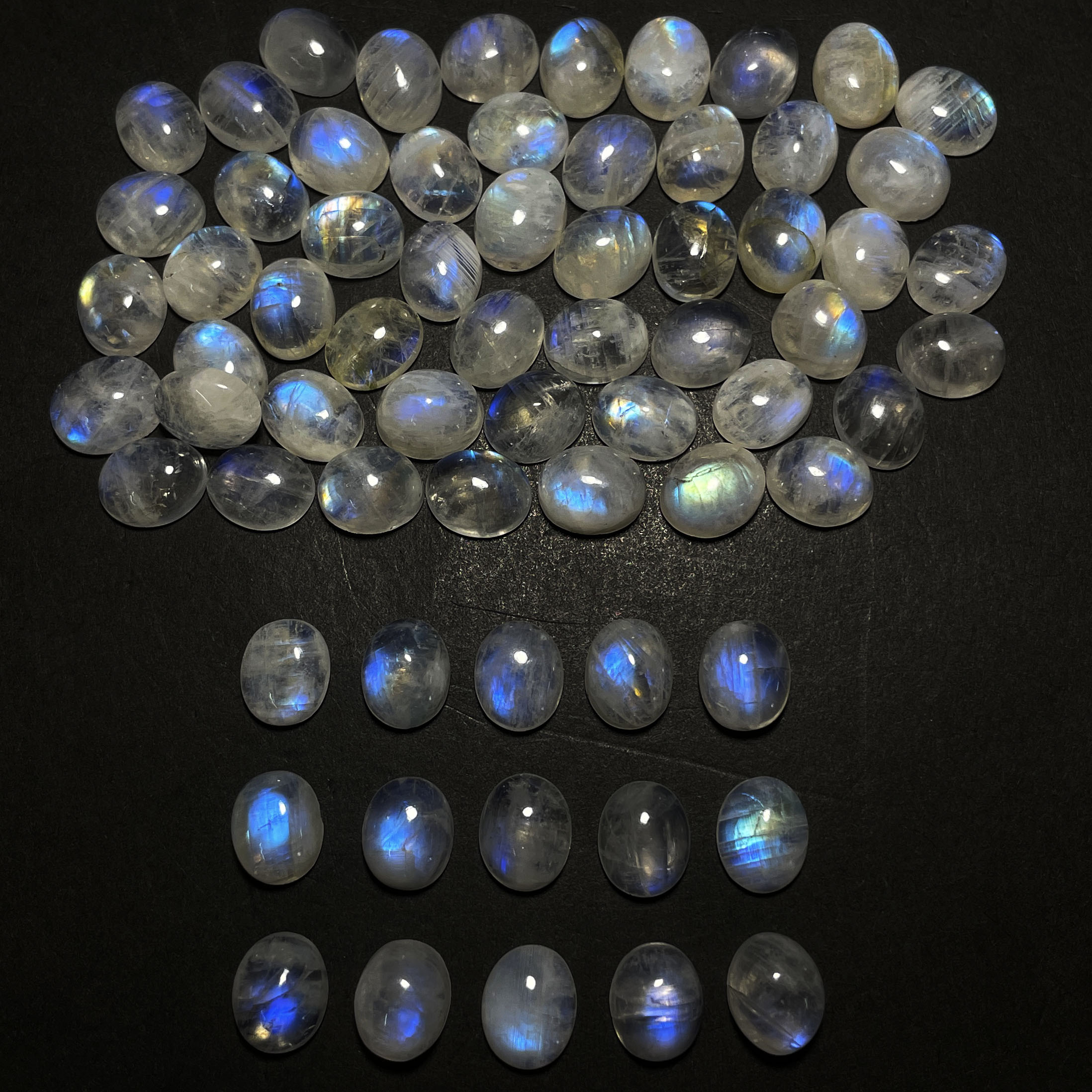 Natural Rainbow Moonstone Oval Cabochon Loose Gemstone Lot 38 Pcs 8*10 MM 126 CT