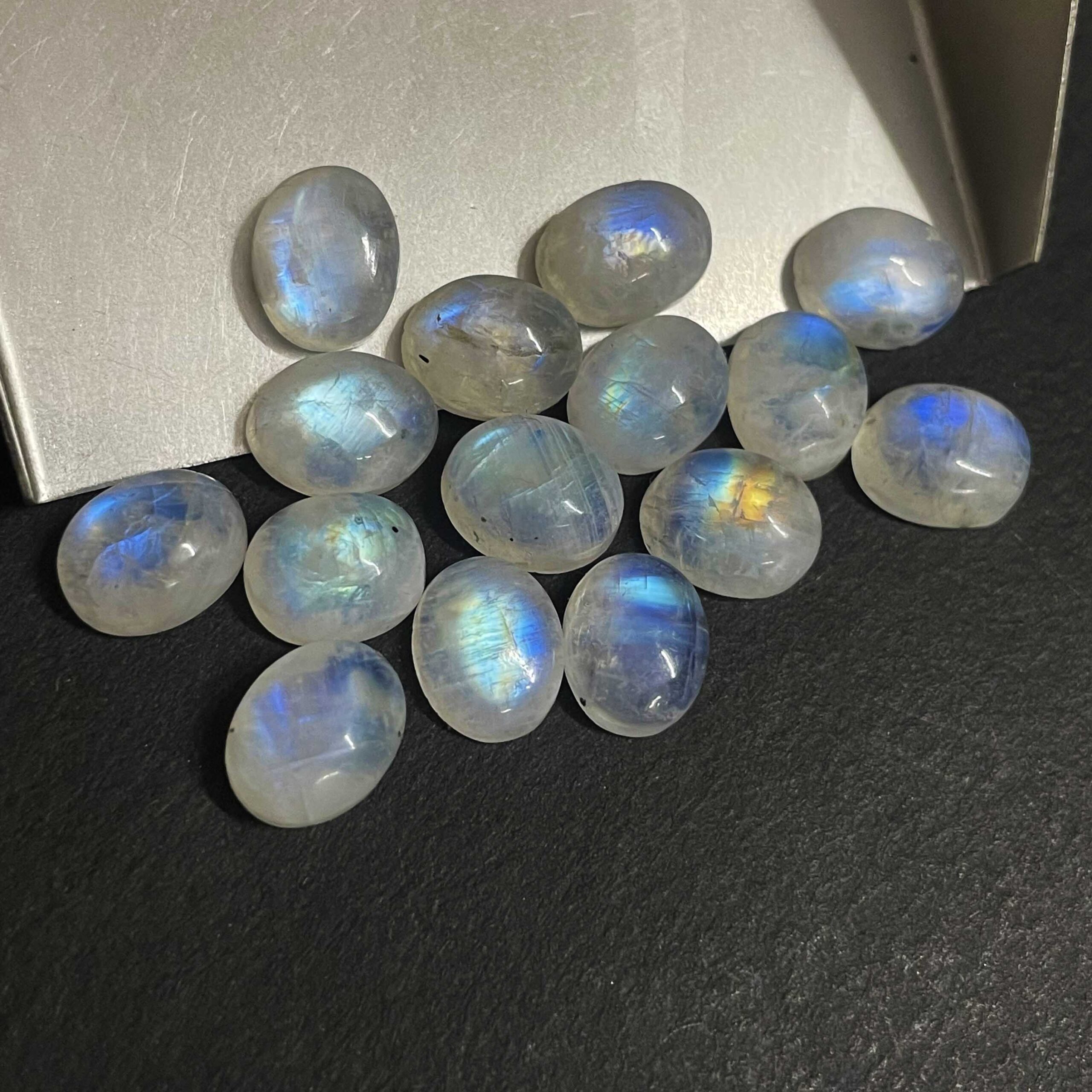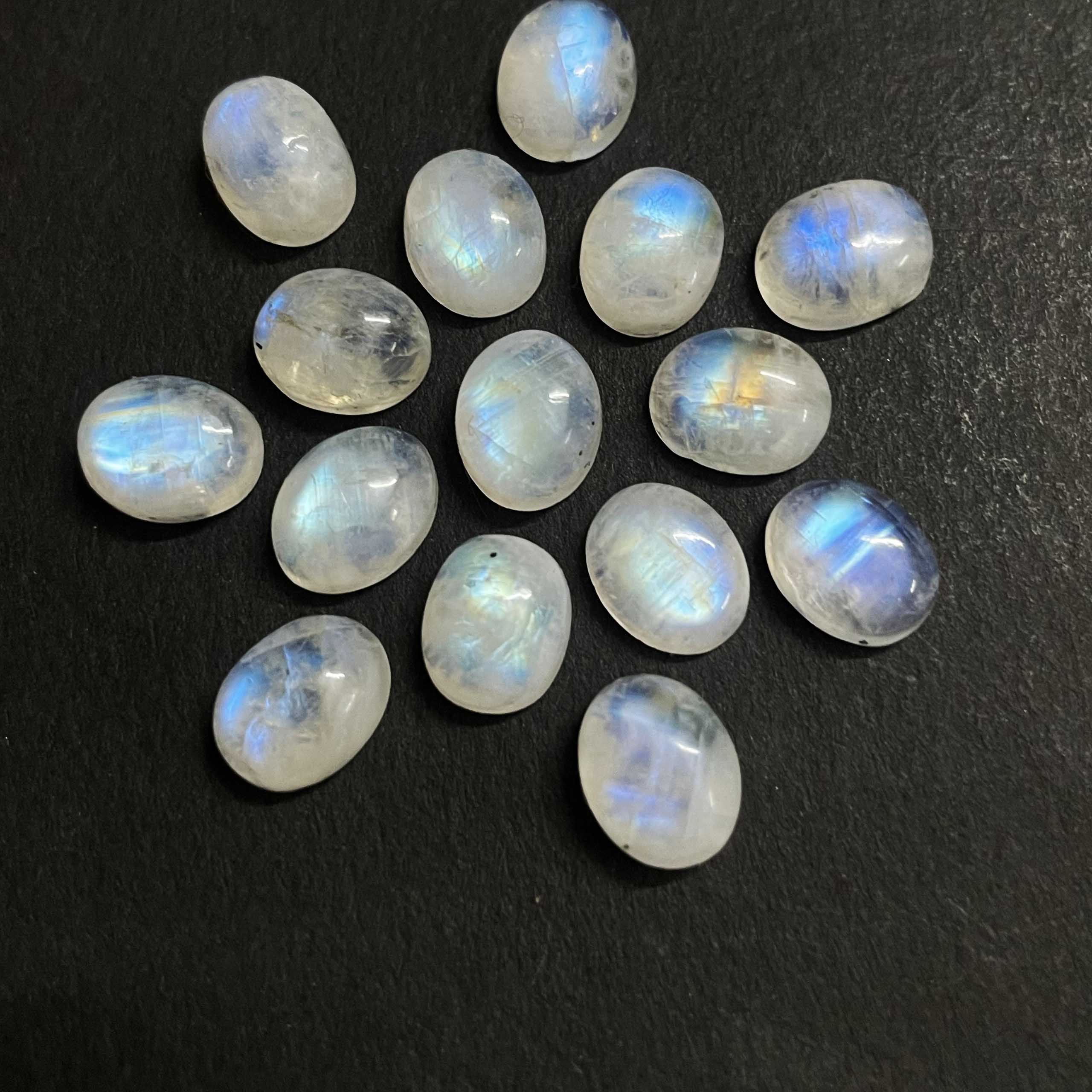 Home Rainbow Moonstone Natural Rainbow Moonstone Oval Cabochon Loose Gemstone Lot 31 Pcs 8×10 MM 96 CT