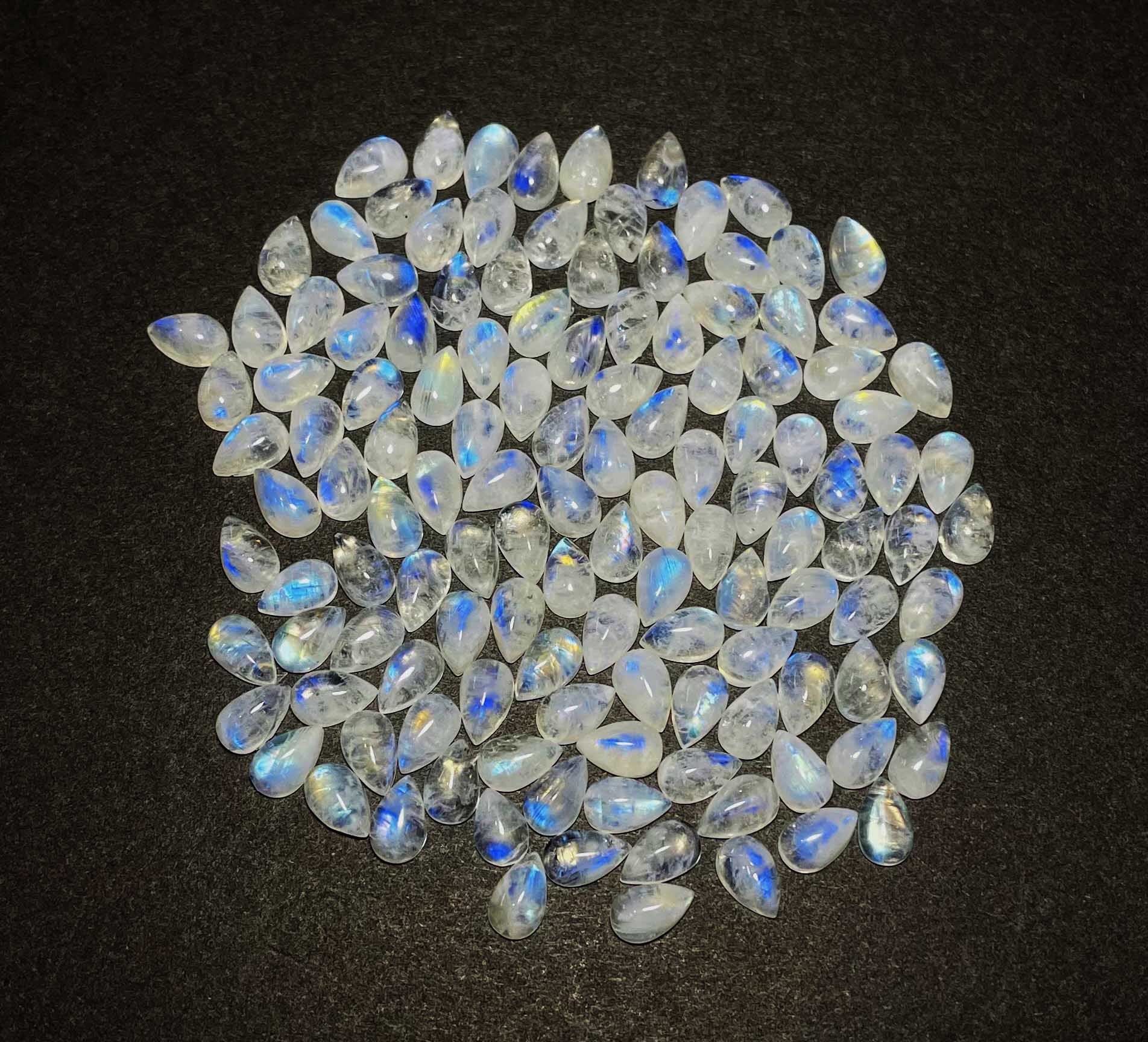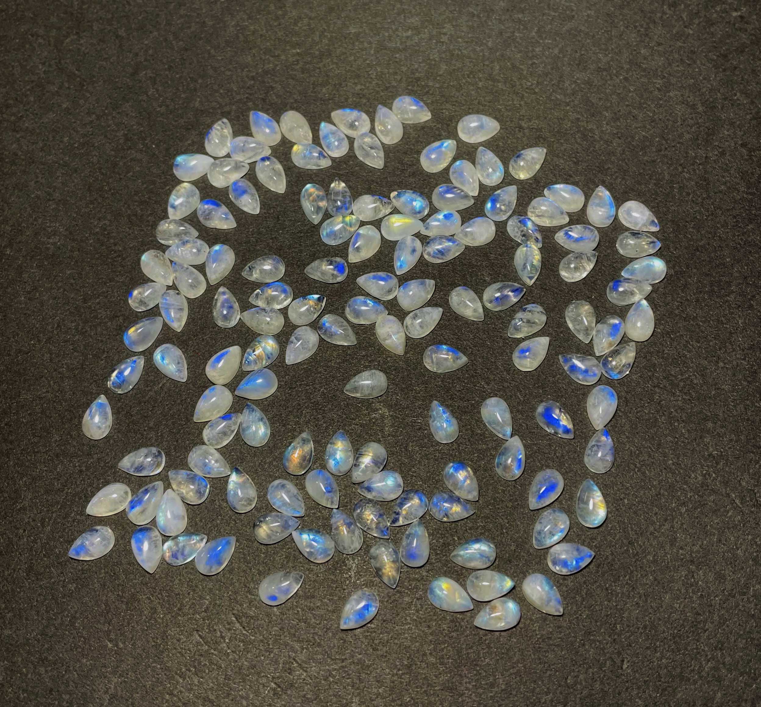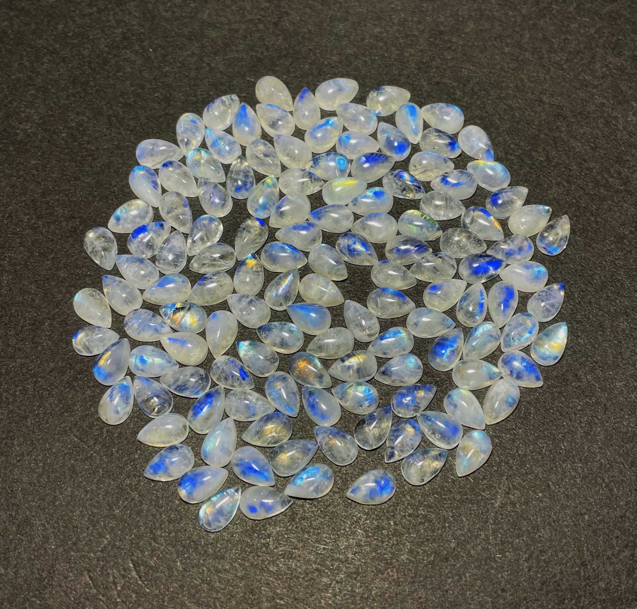 Natural Rainbow Moonstone Pear Cabochon Loose Gemstone Lot 96 Pcs 5×8 MM 100 CT