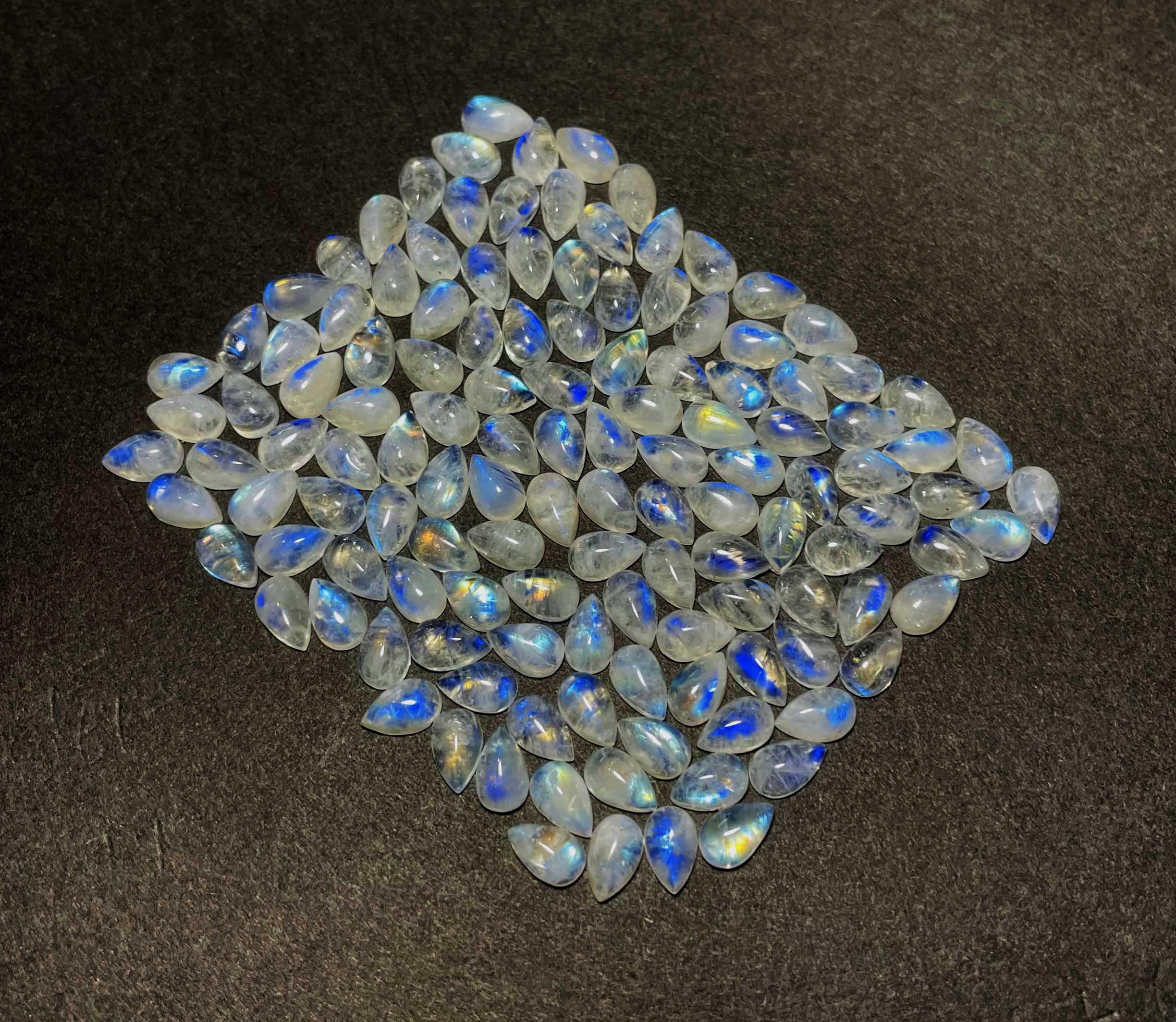 Home Rainbow Moonstone Natural Rainbow Moonstone Pear Cabochon Loose Gemstone Lot 96 Pcs 5×8 MM 100 CT