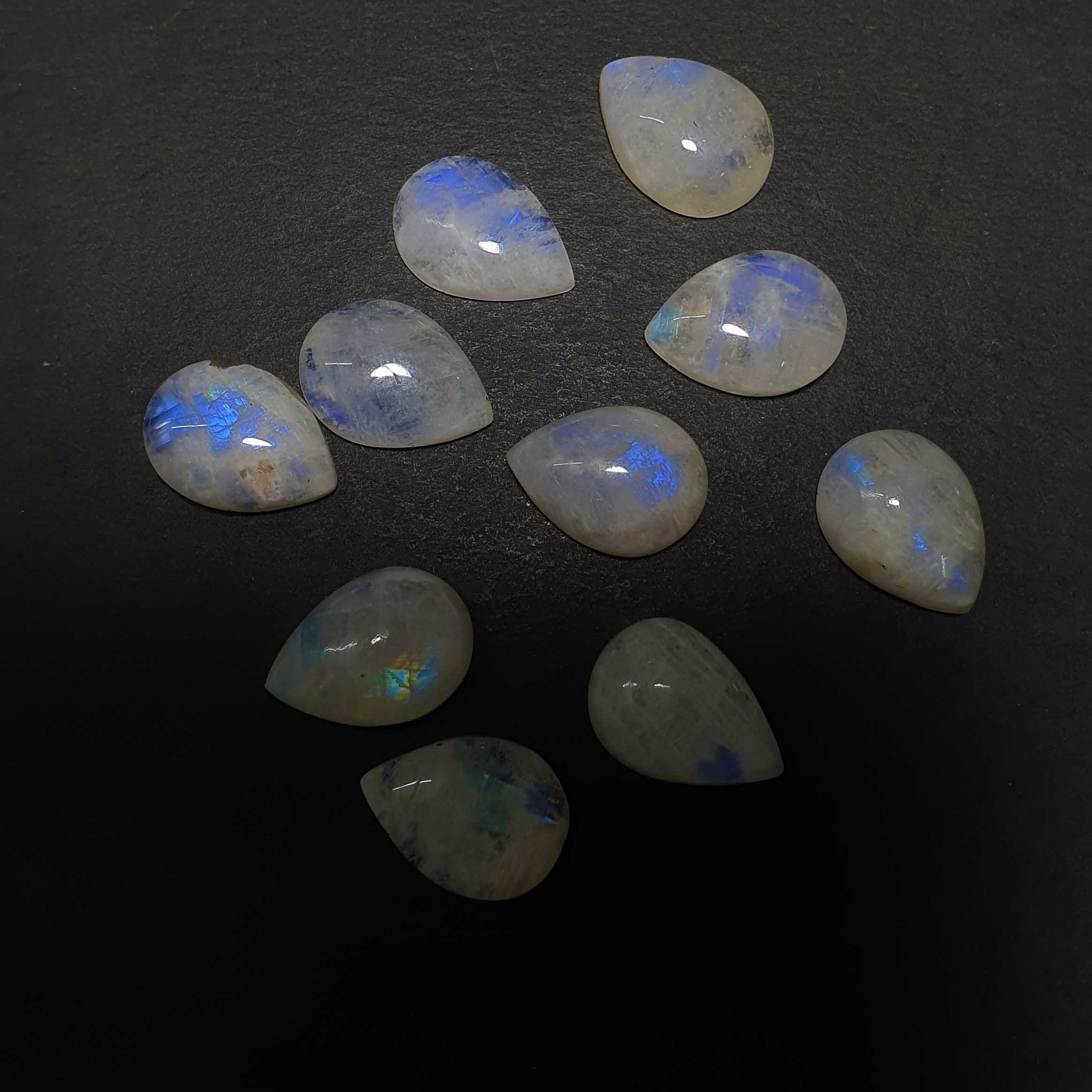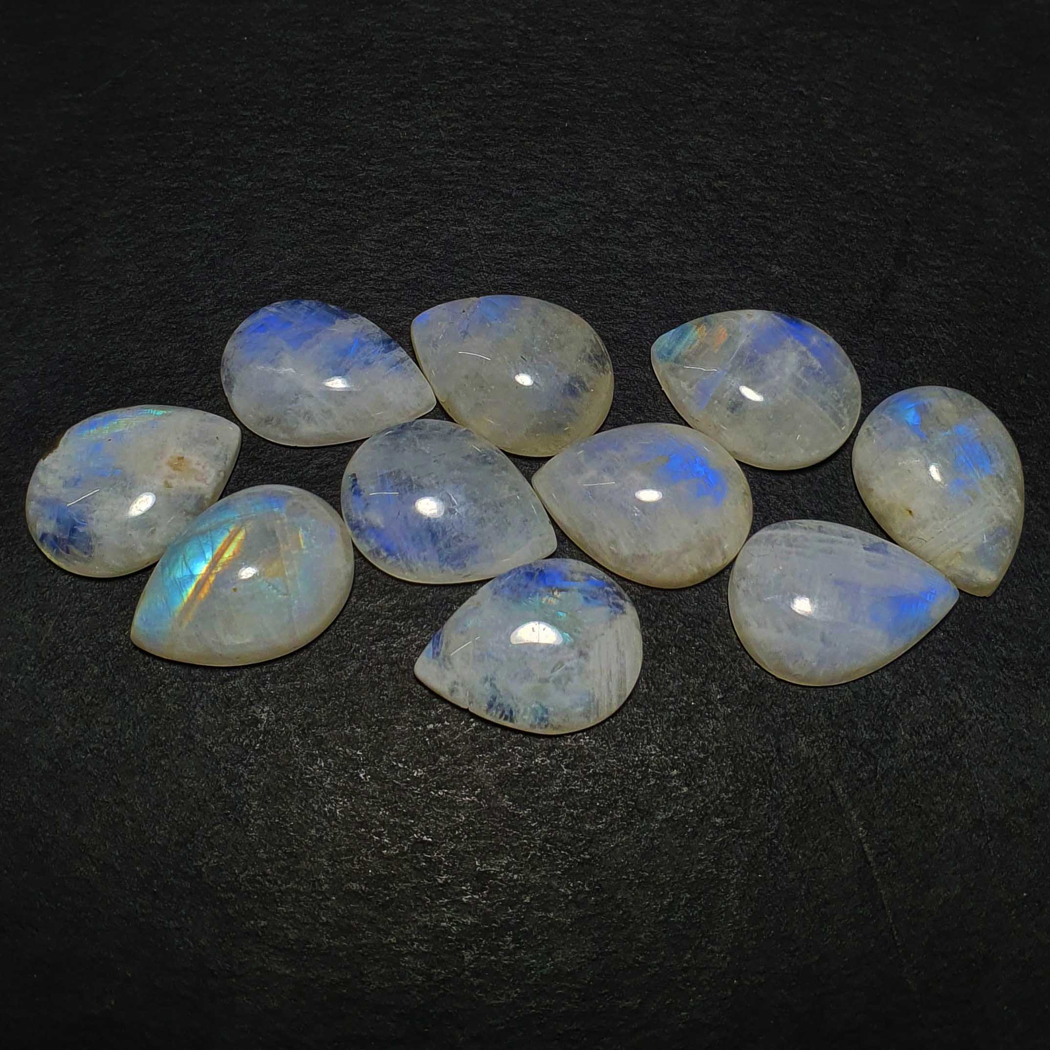 Natural Rainbow Moonstone Pear Cabochon Loose Stone Lot 10 pc 13*18 mm 100 ct