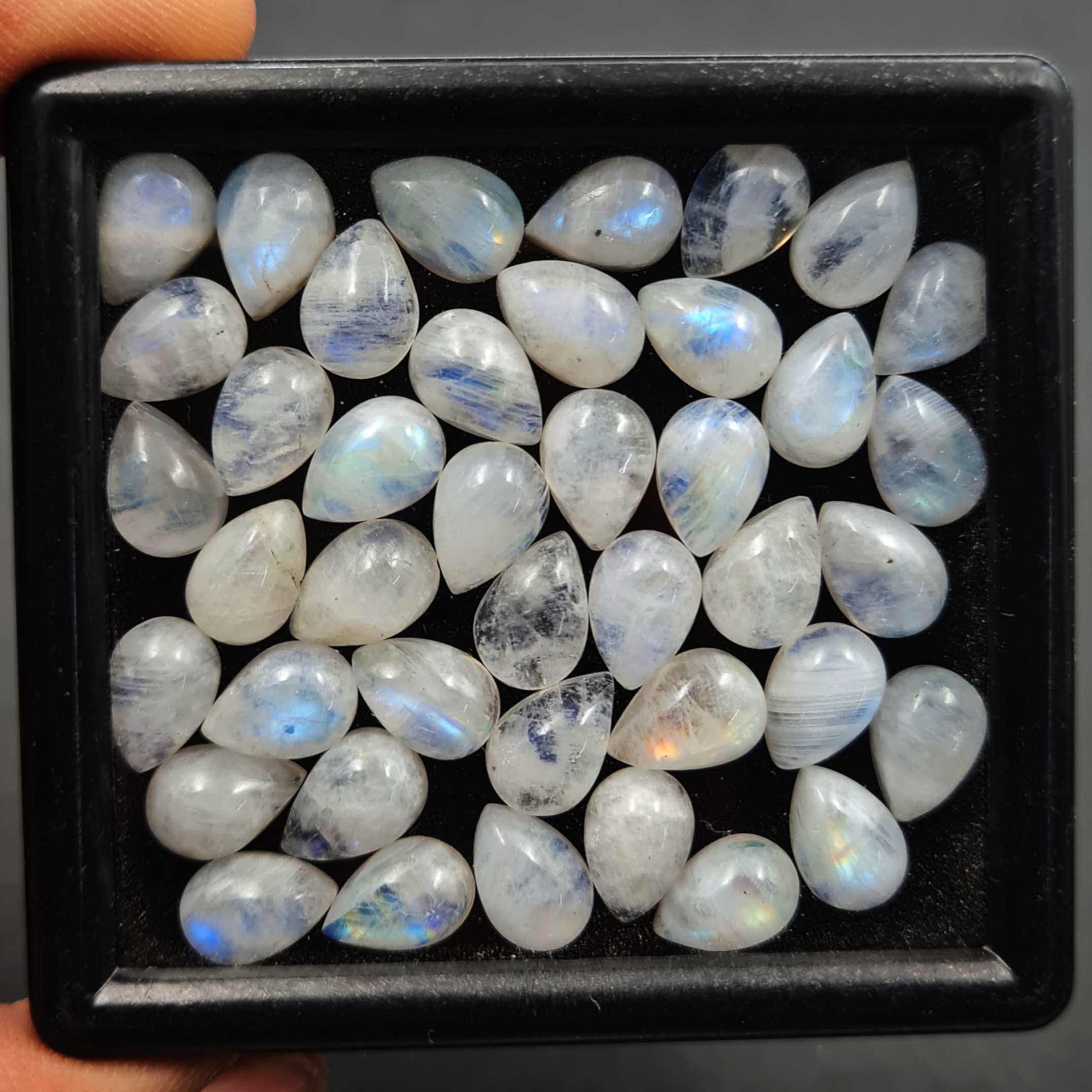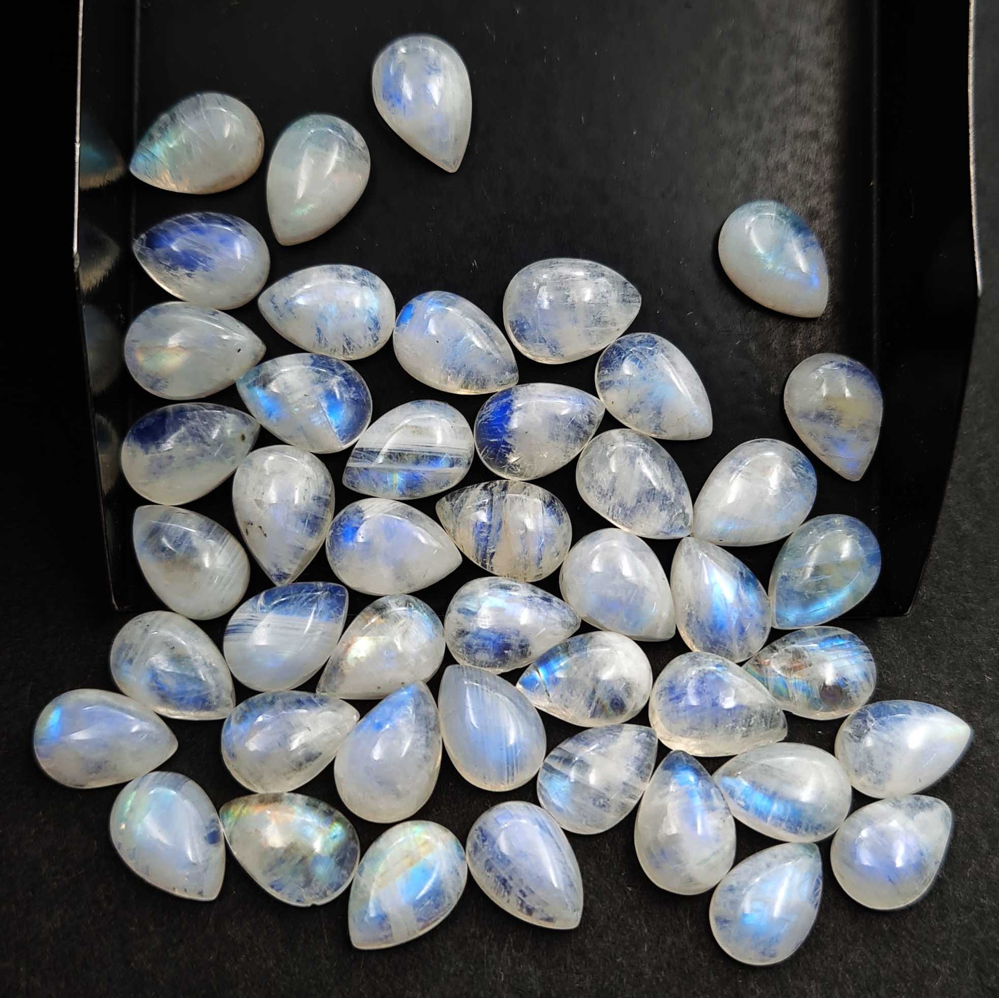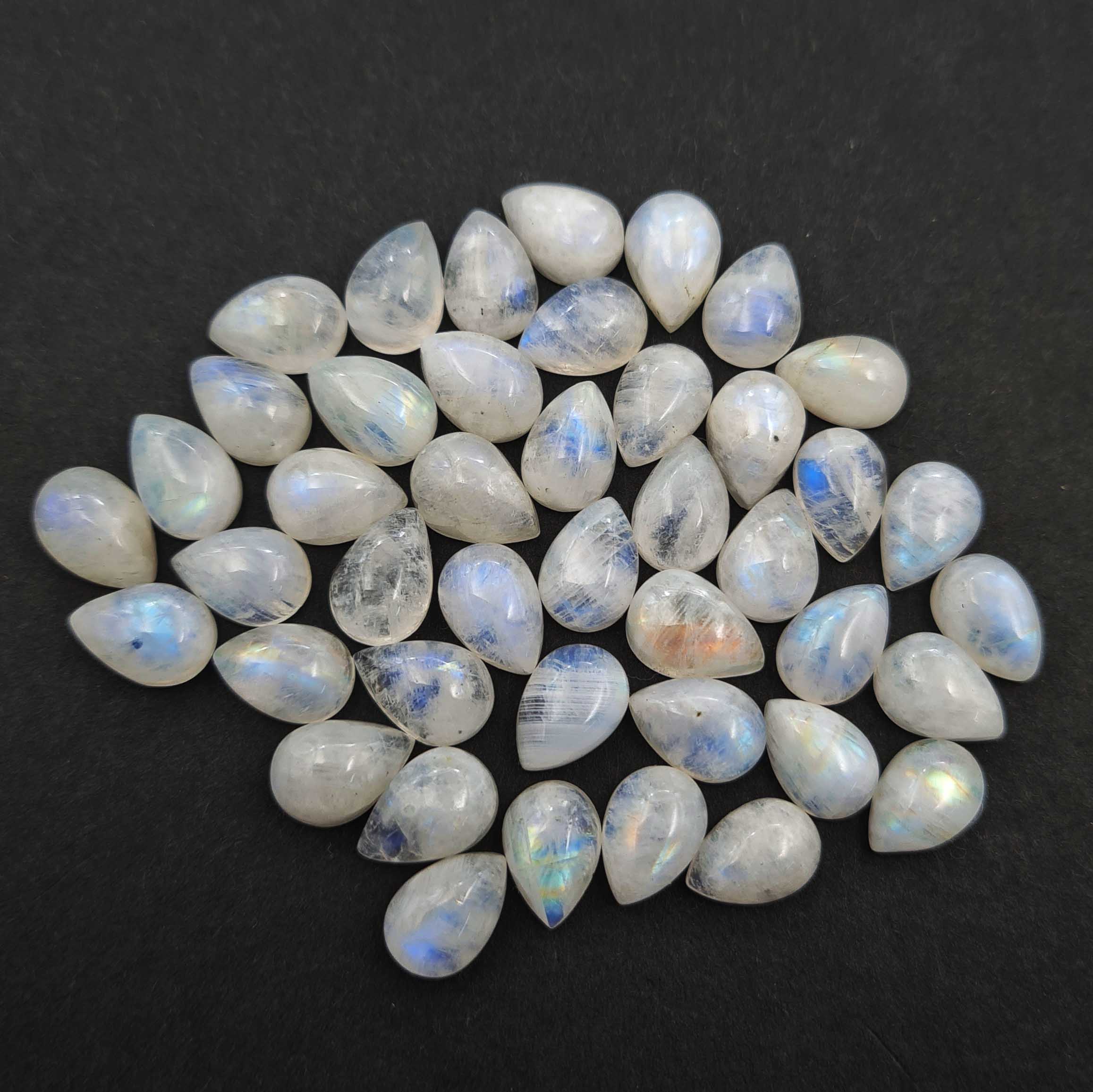 Natural Rainbow Moonstone Pear Cabochon Loose Stone Lot 46 Pcs 7×10 MM 100 CT