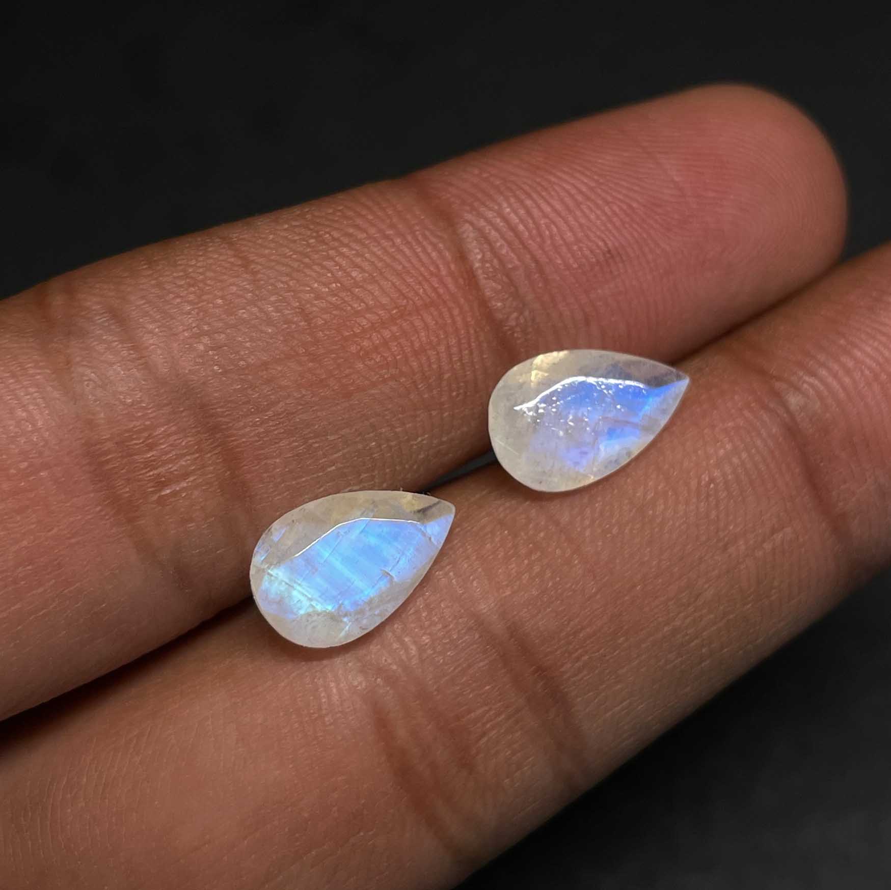 Home Rainbow Moonstone Natural Rainbow Moonstone Pear Cut Loose Gemstone Lot 2 Pcs 7*12 MM 4.65 CT