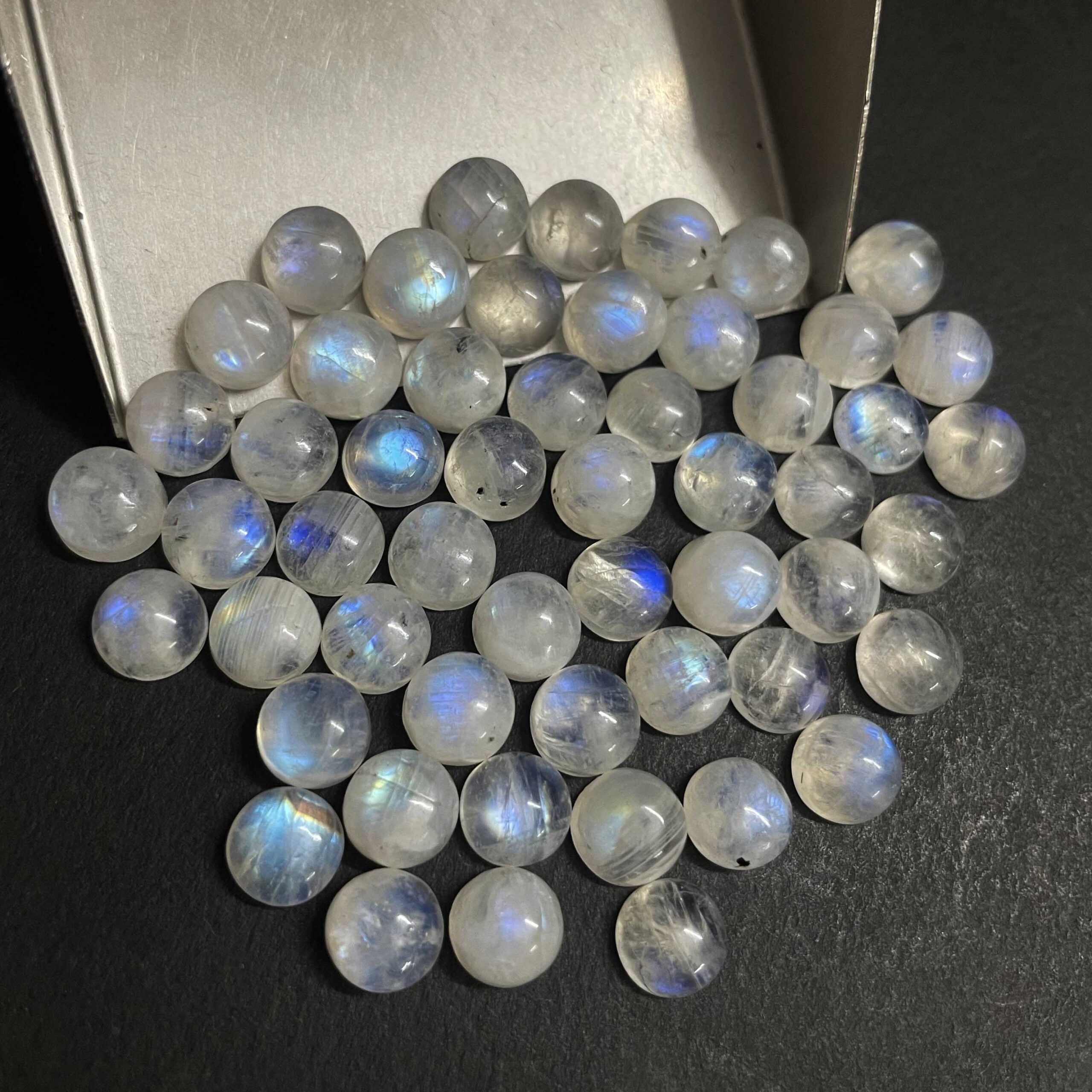 Home Rainbow Moonstone Natural Rainbow Moonstone Round Cabochon Gemstone Lot 37 Pcs 8 MM 65 CT