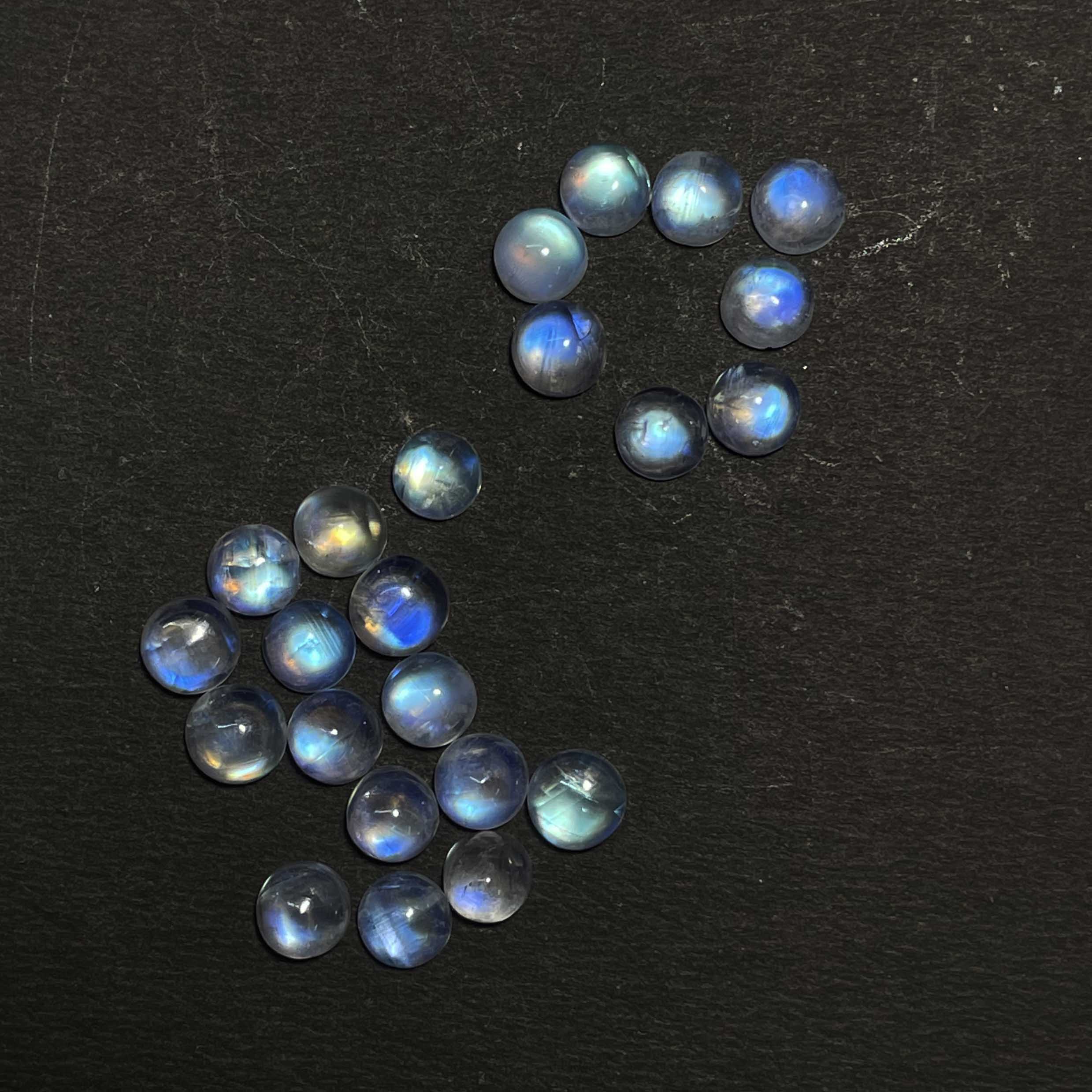 Natural Rainbow Moonstone Round Loose Gemstone Cabochon Lot 6 pcs 7 MM 10 CT