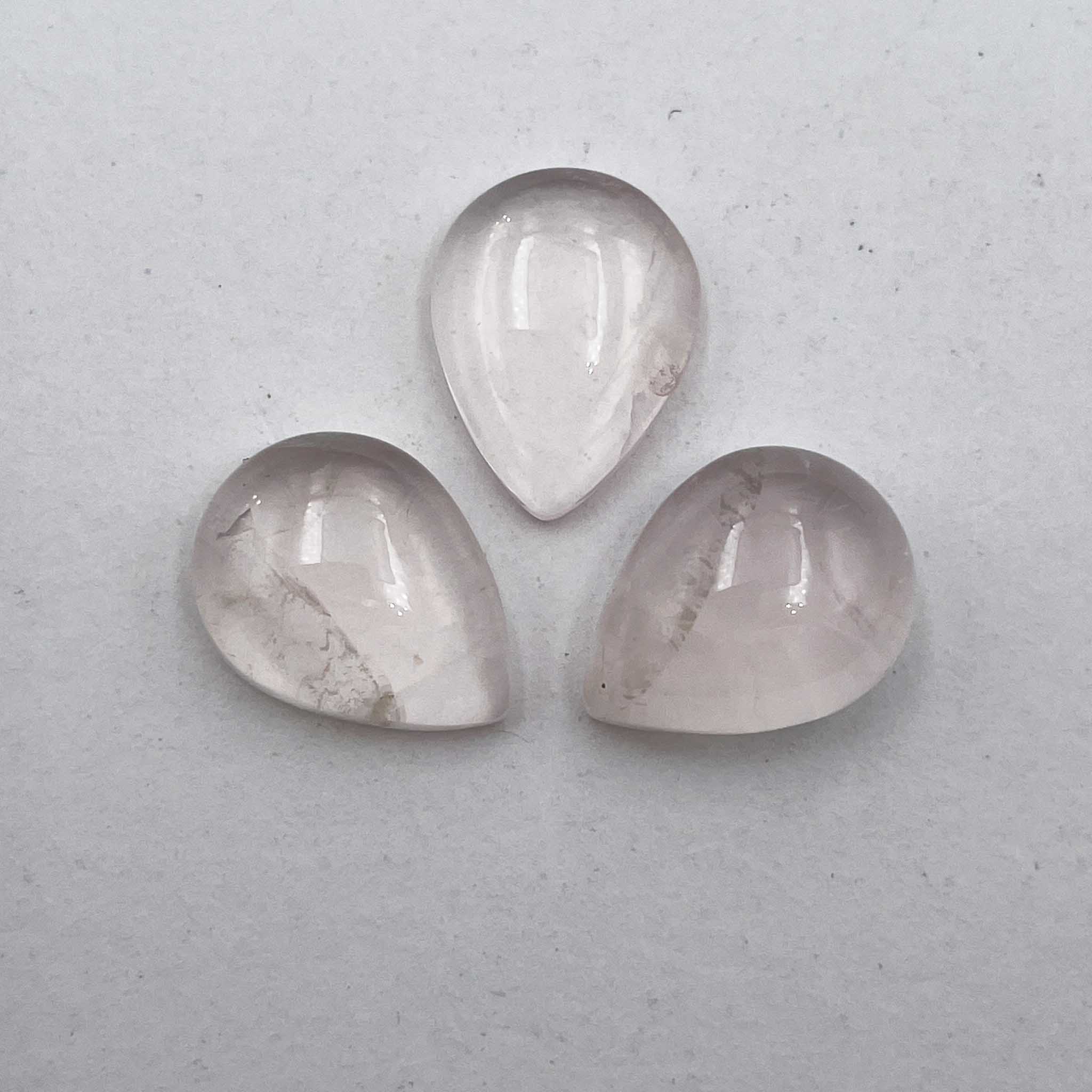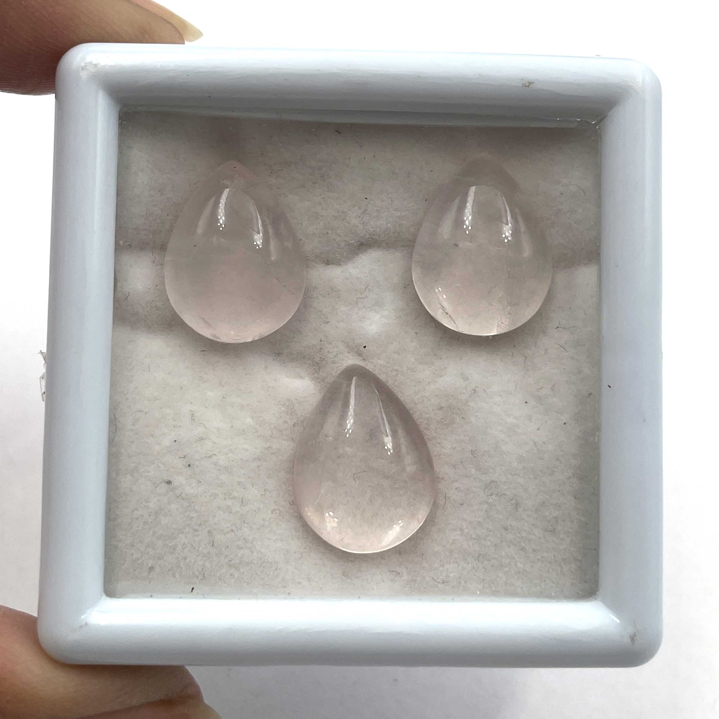 Natural Rose Quartz Cabochon Pear Loose Gemstone 3 Pcs 12*16 MM 26 CT