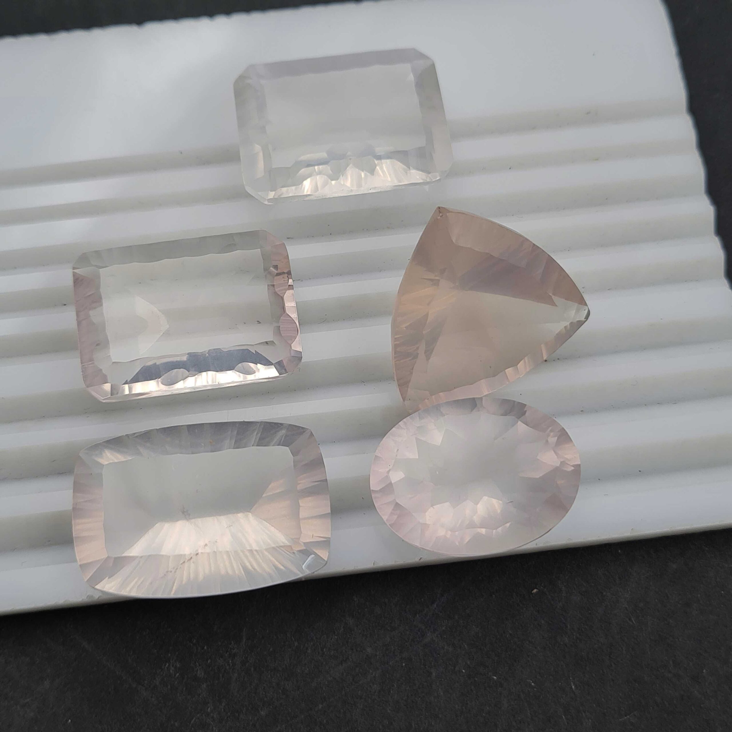 Natural Rose Quartz Mix Shape Concave Cut Gemstone 5 Pcs 19×29-20×36 MM 182 CT