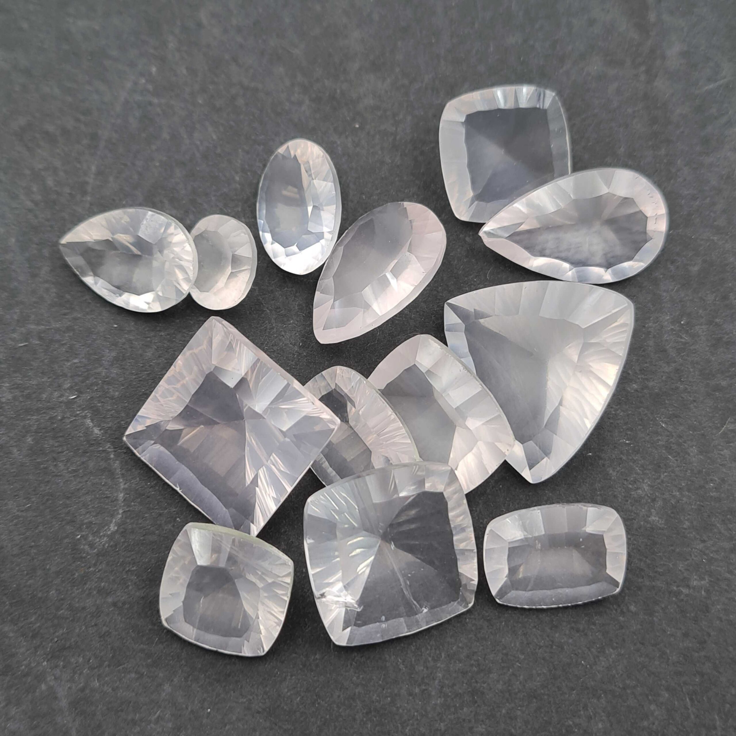 Natural Rose Quartz Mix Shape Concave Cut Gemstone 7 Pcs 10×12-22×23 MM 77 CT