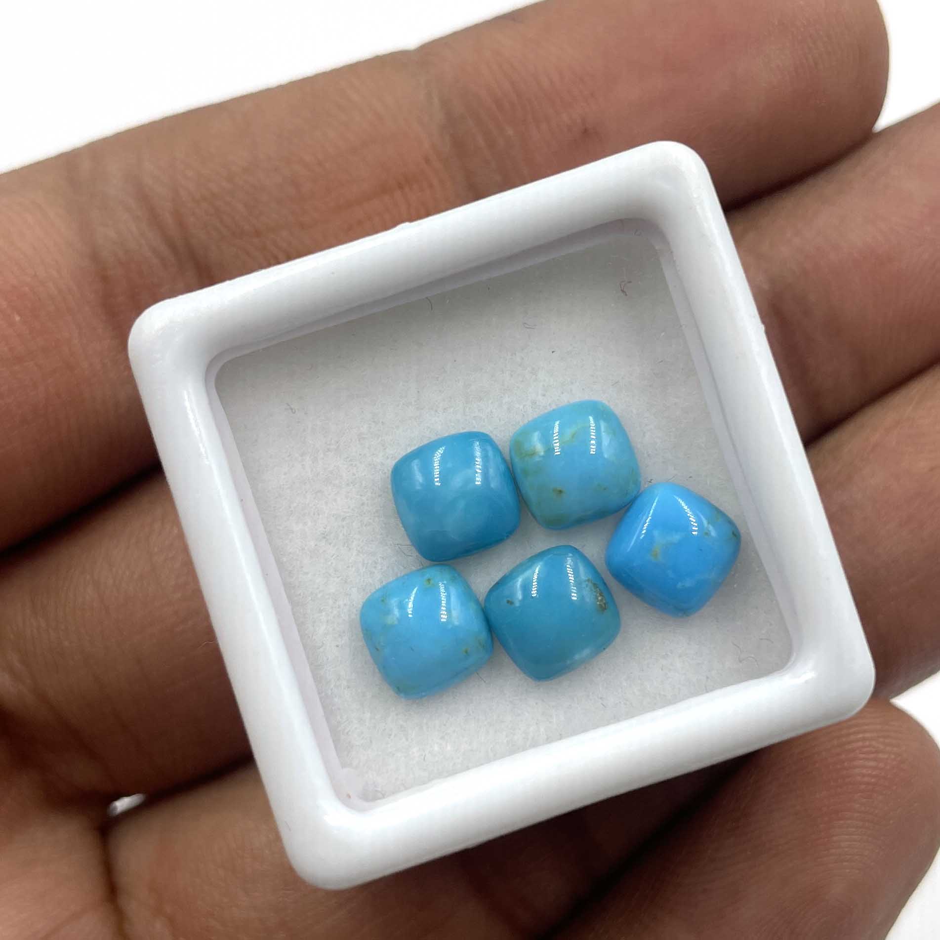 Natural Sleeping Beauty Turquoise Cushion Cabs Loose Stone Lot 5 Pcs 6 MM 4 CT