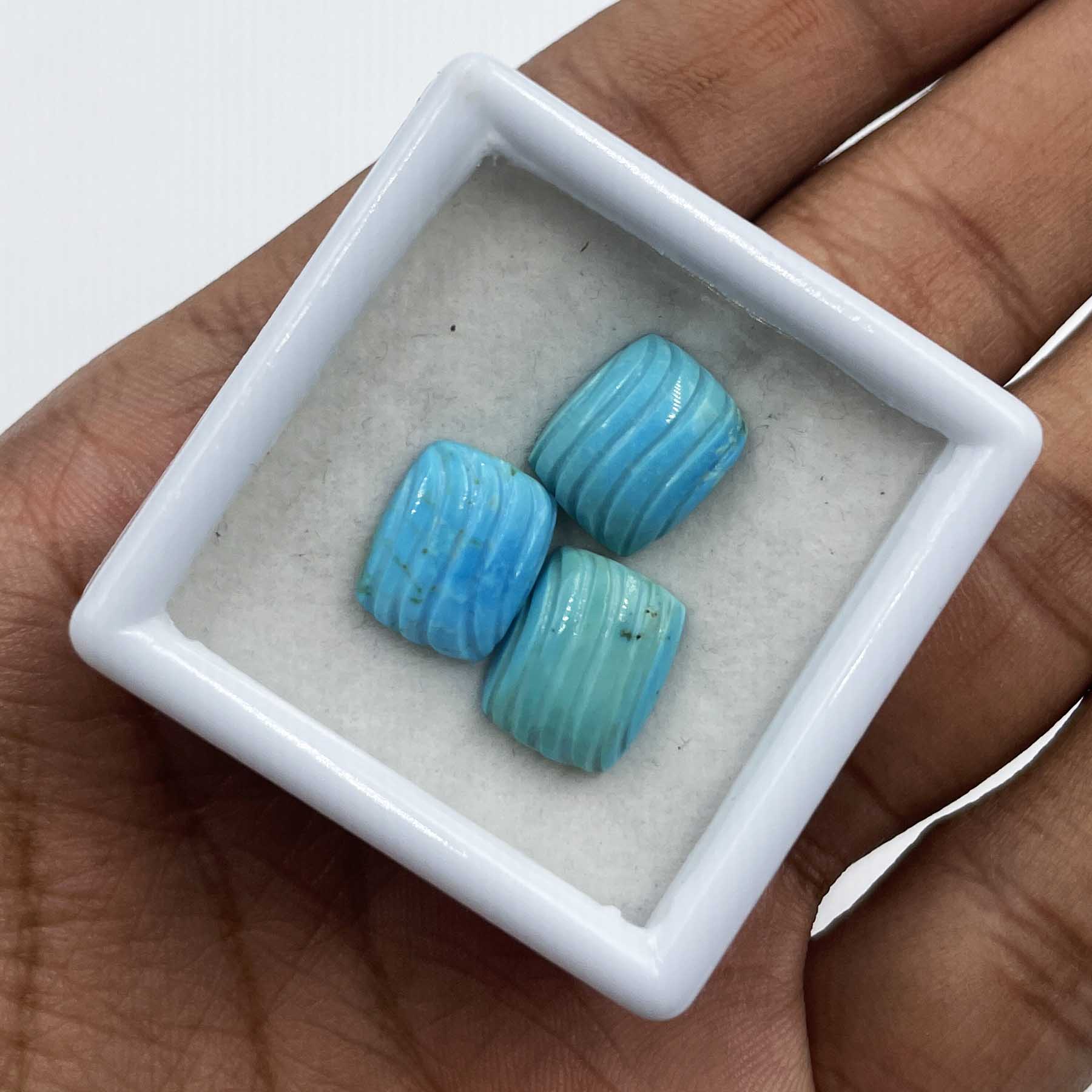 Natural Sleeping Beauty Turquoise Cushion Carving Stone Lot 3 Pcs 10*12 MM 14 CT