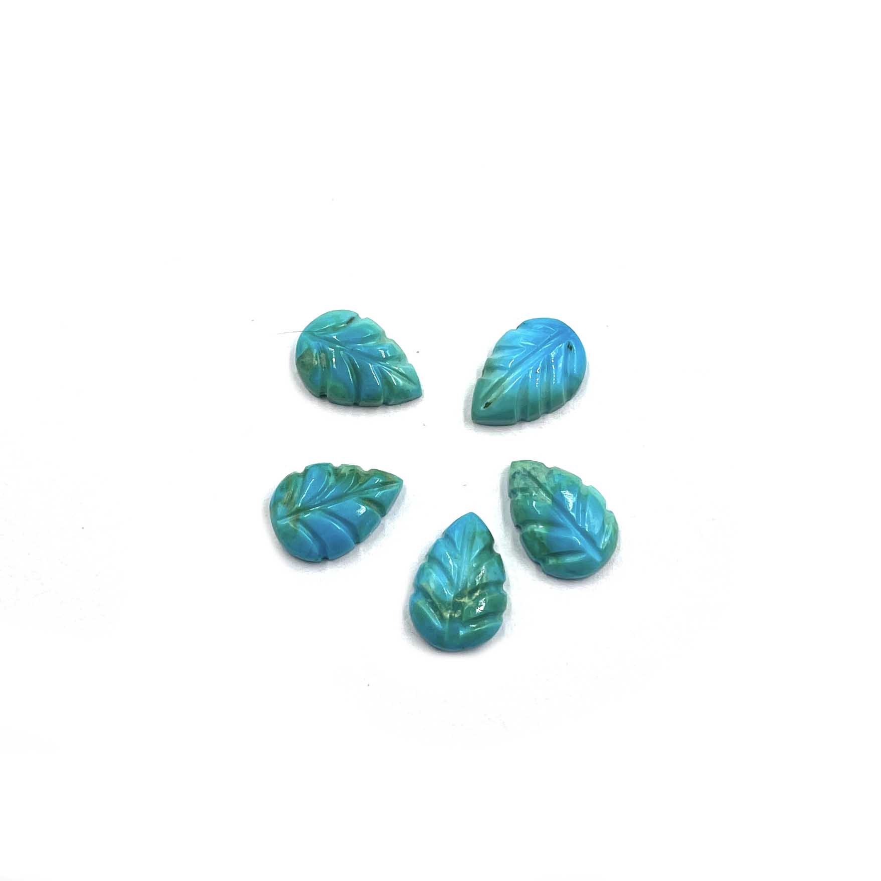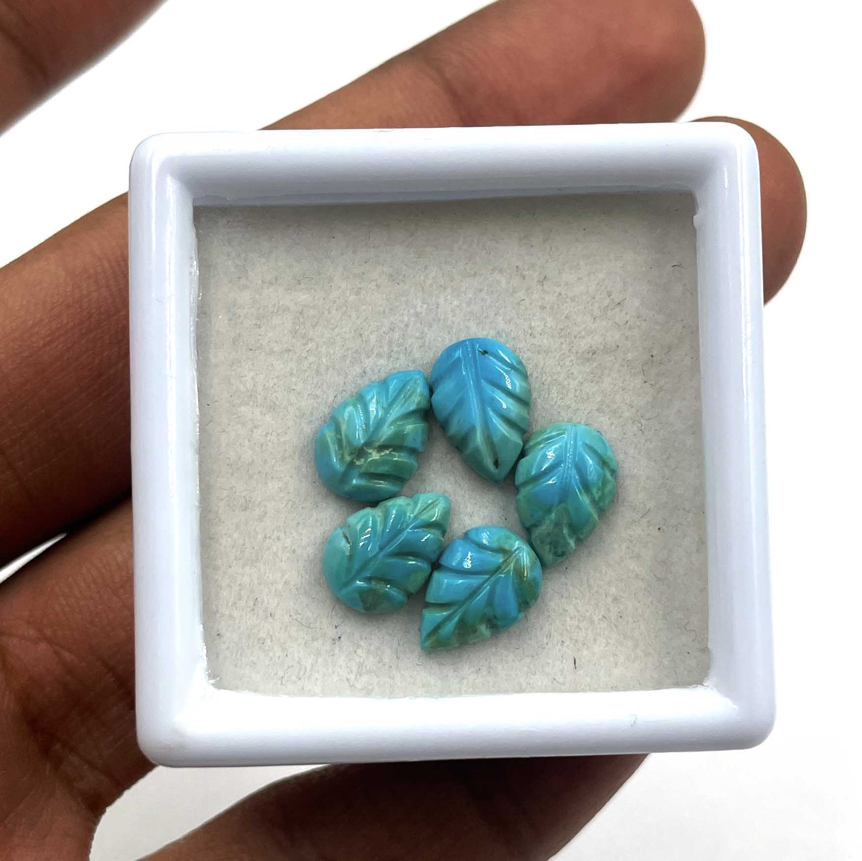 Natural Sleeping Beauty Turquoise Leaf Carving Loose Stone Lot 5Pcs 7*10 MM 7 CT