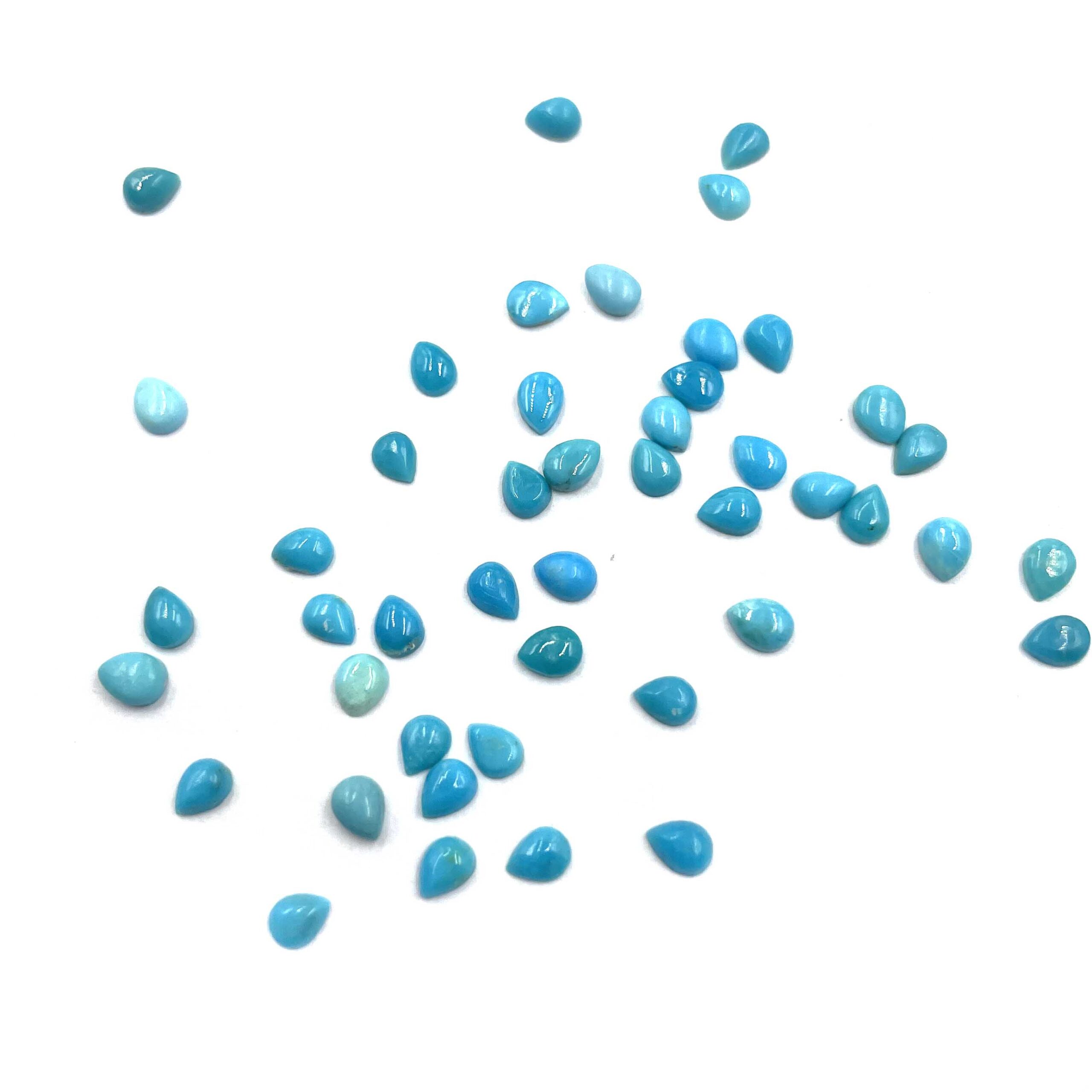 Natural Sleeping Beauty Turquoise Pear Cabochon Stone Lot 72 Pcs 3*4 MM 10 CT