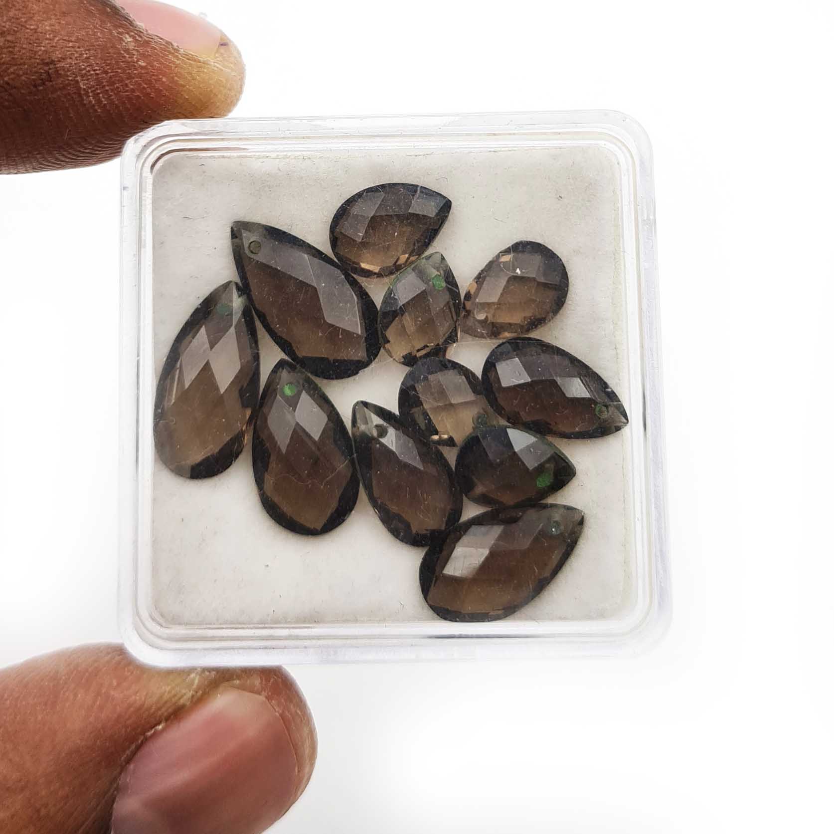 Home Smoky Quartz Natural Smoky Quartz Pear Cut Cross Drill Loose Stone 6*8-7*14 MM 16 CT 11 Pc