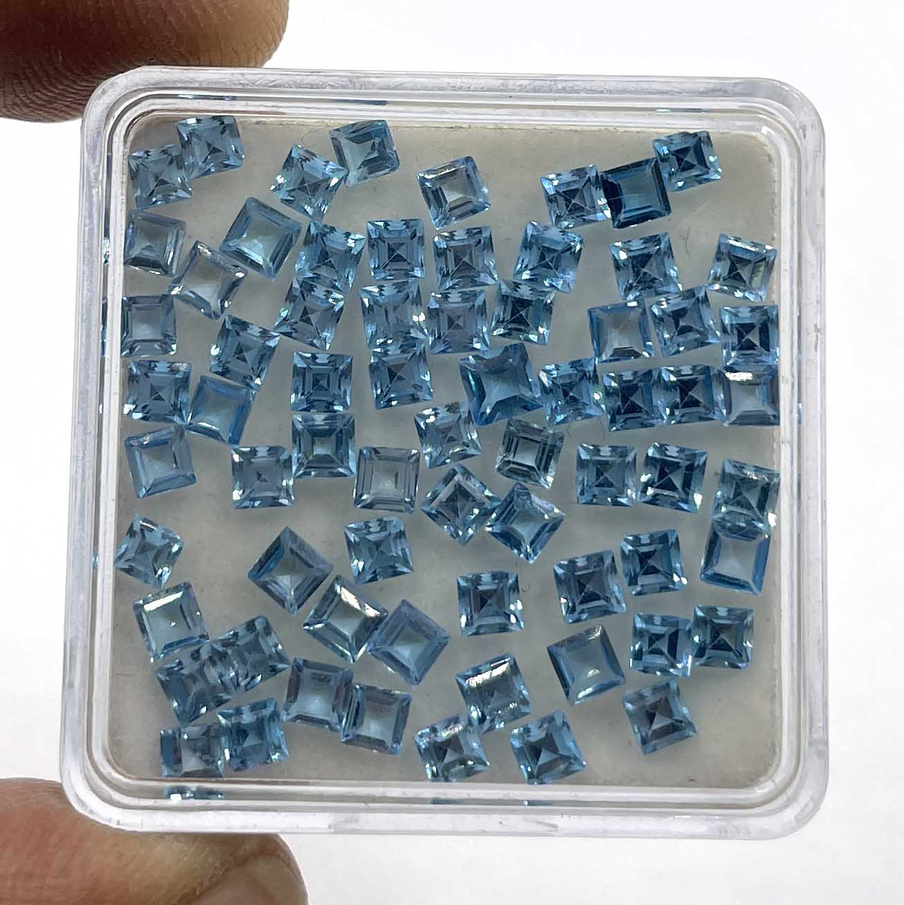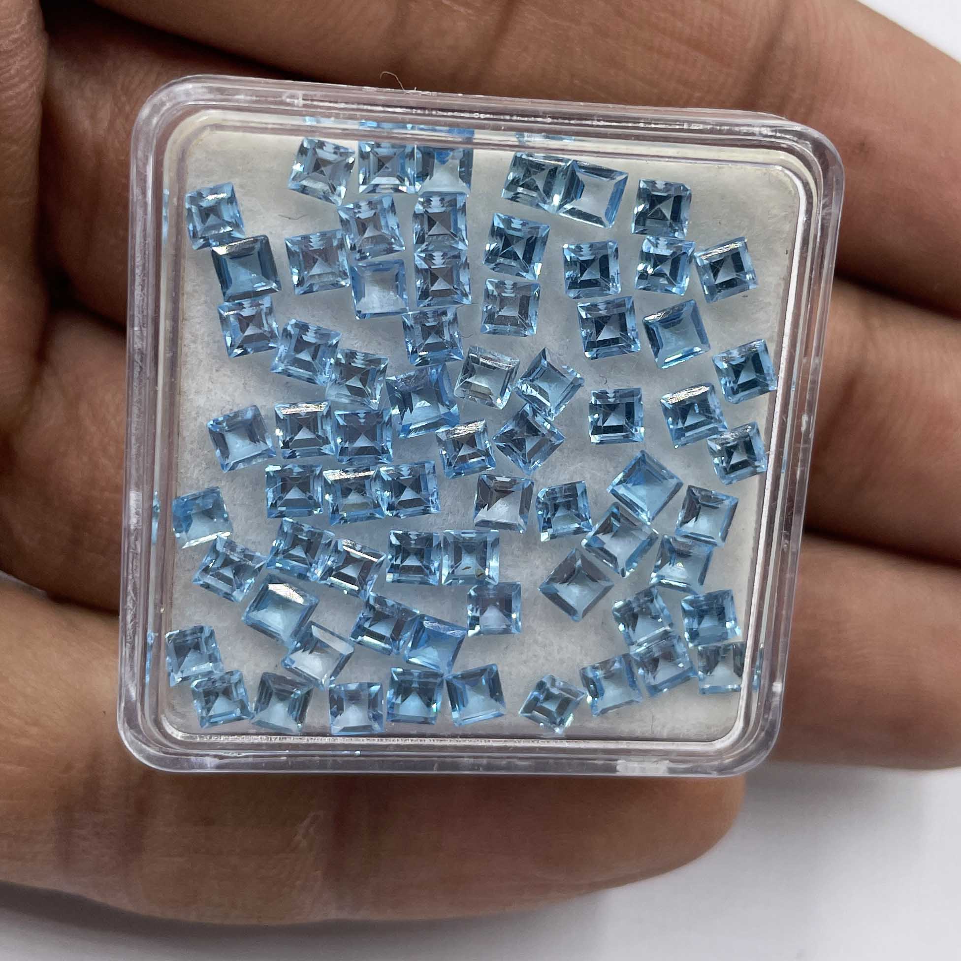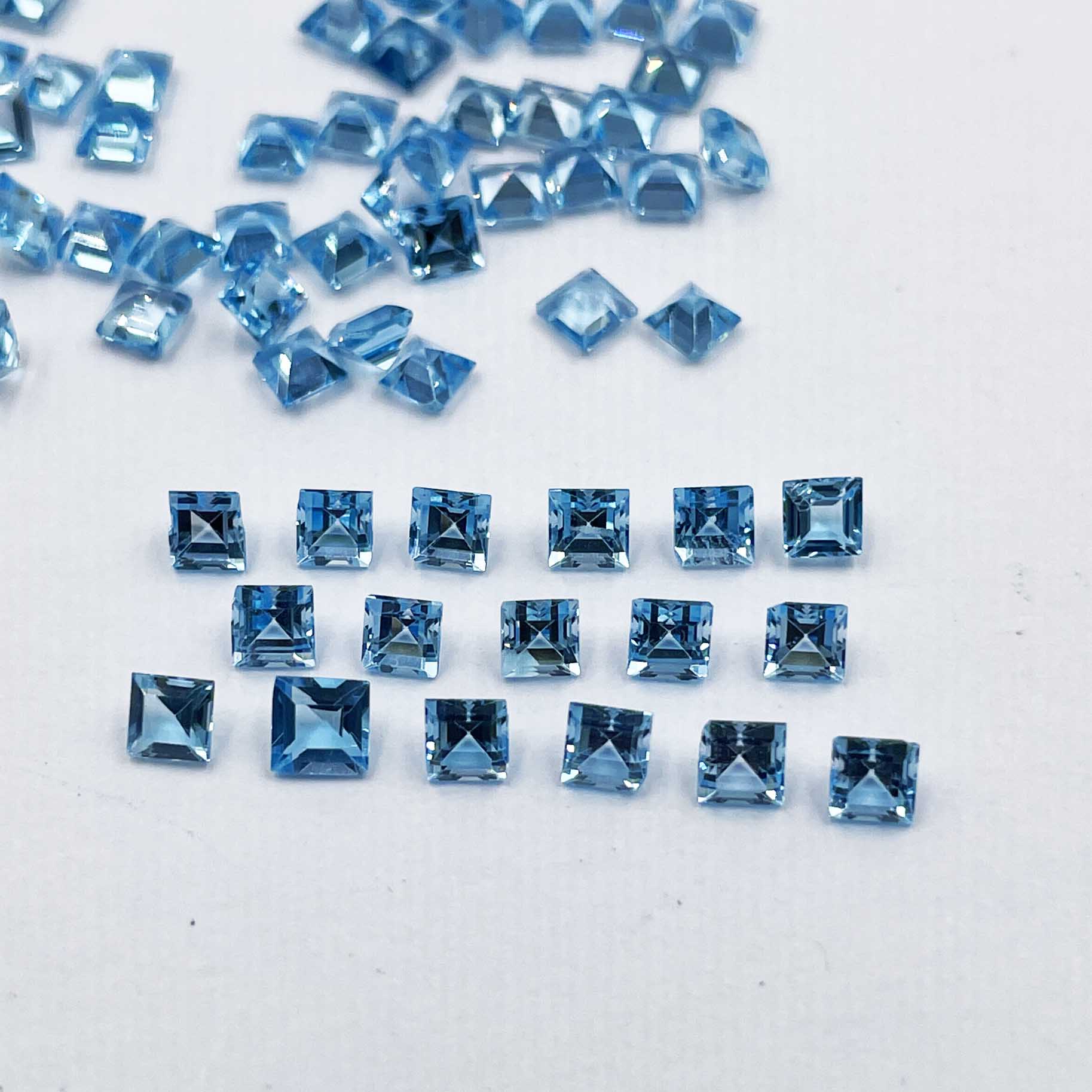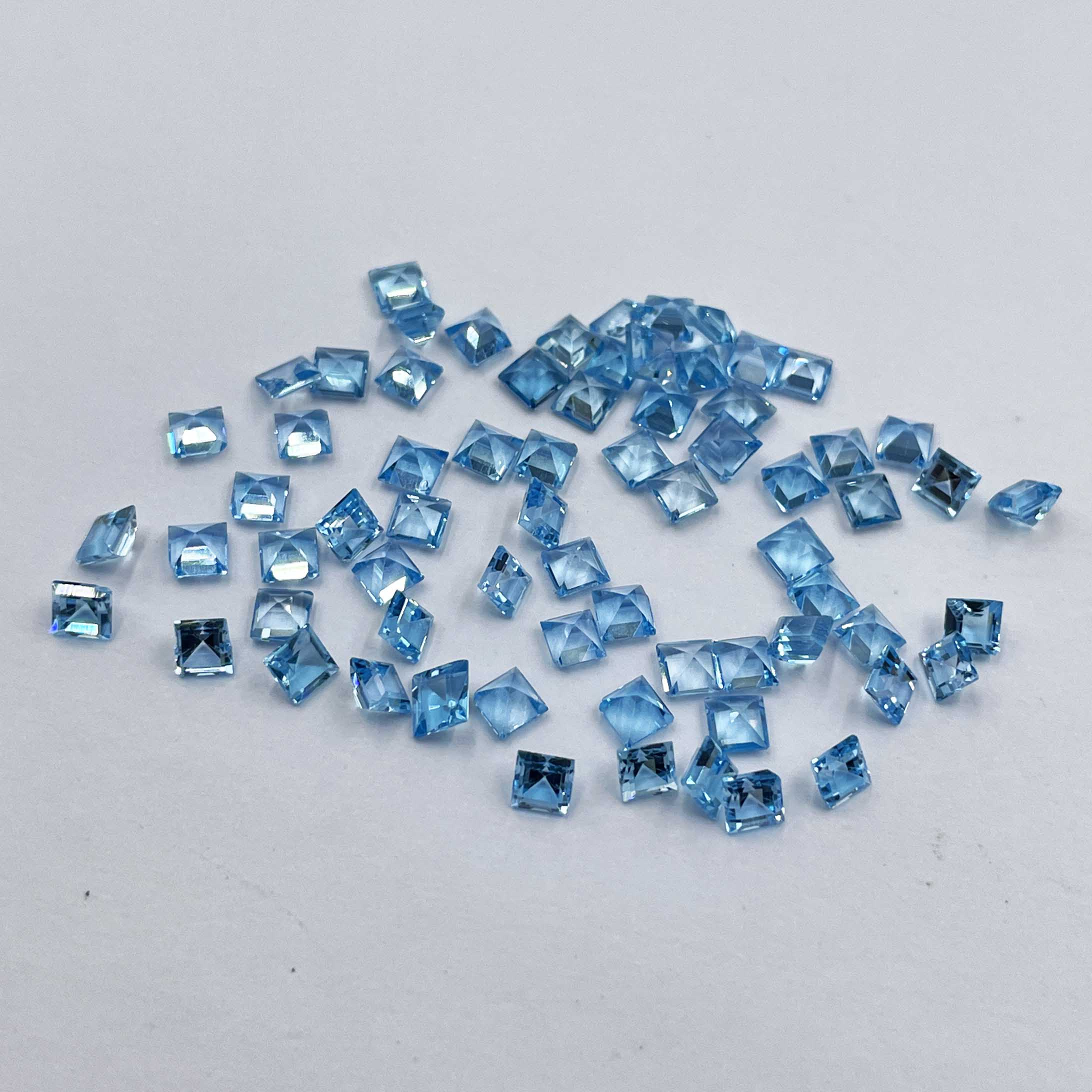 Natural Swiss Blue Topaz Square Cut Loose Gemstone Lot 3 MM 12.5 CT 69 Pcs