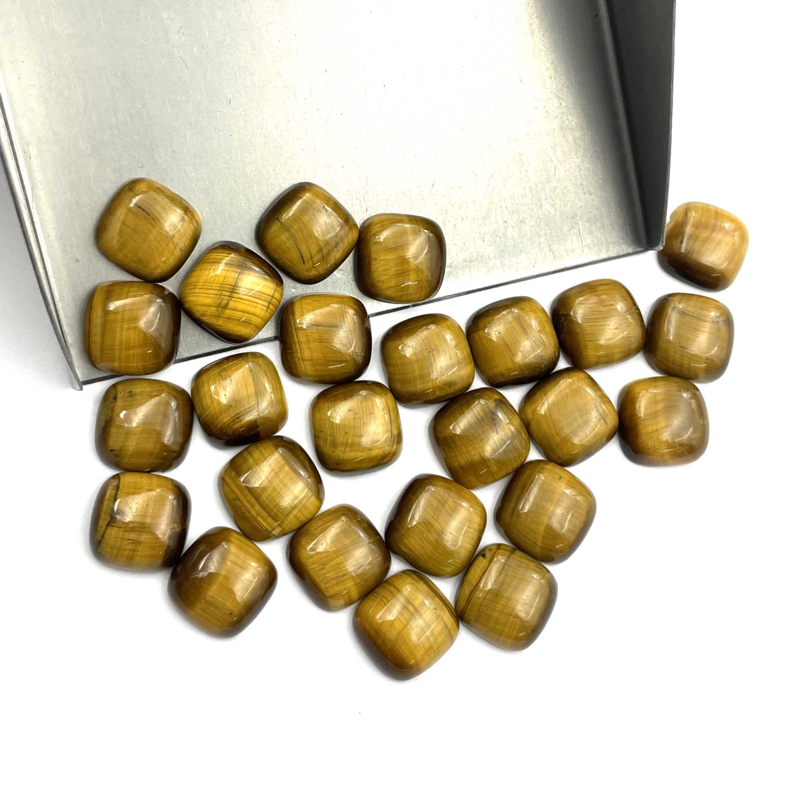 Home Tiger Eye Natural Tiger Eye Cushion Flat Back Cabochon Loose Gemstone 25 Pcs 11 MM 117 CT