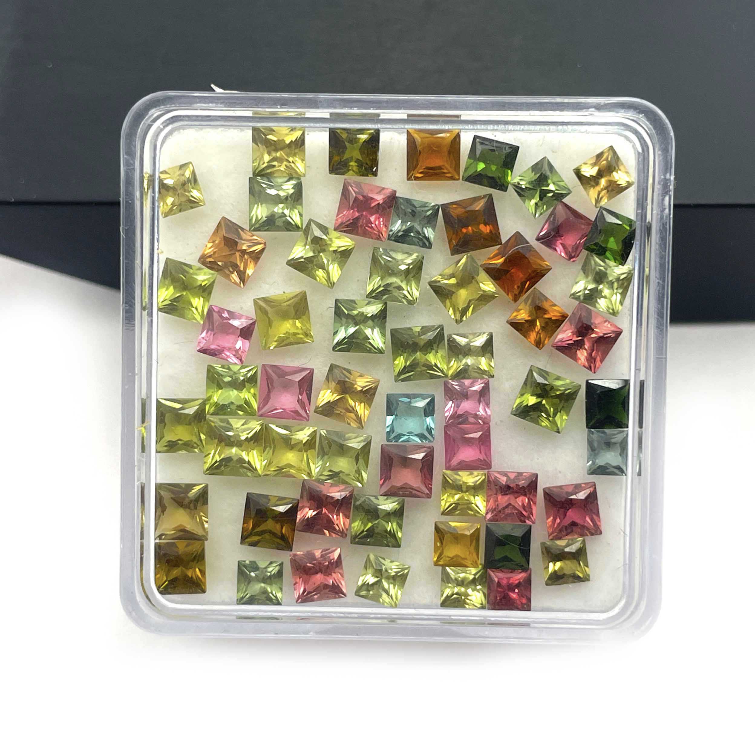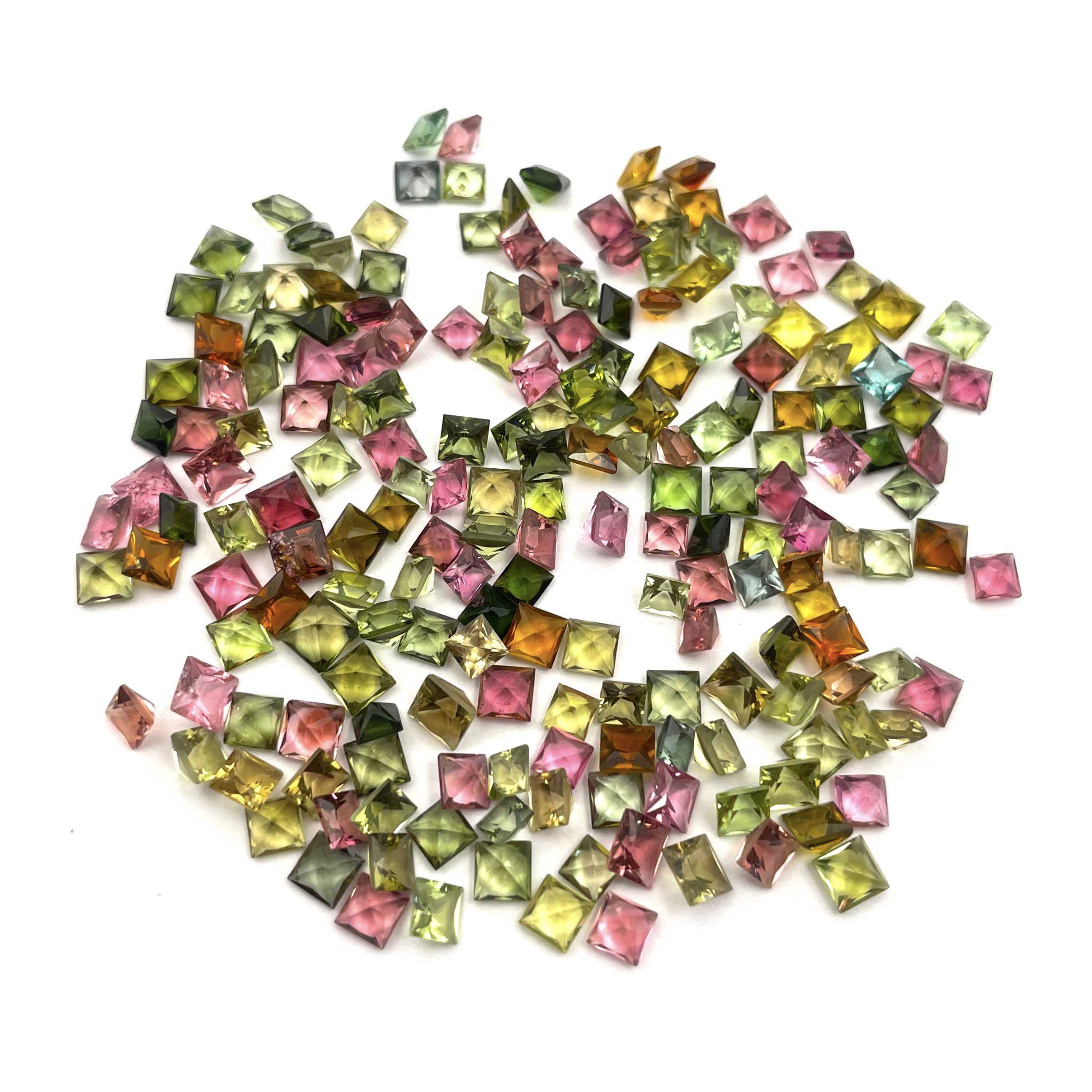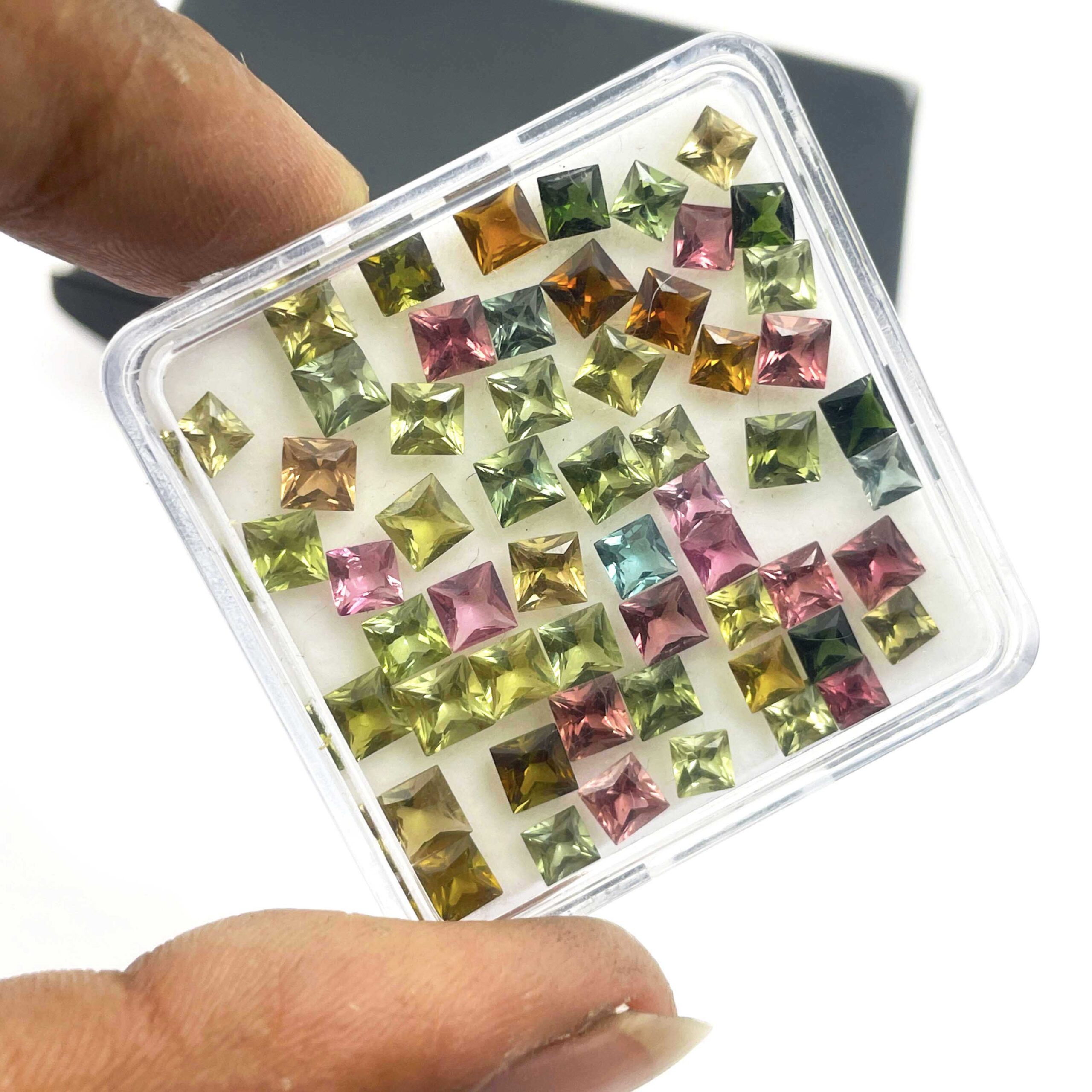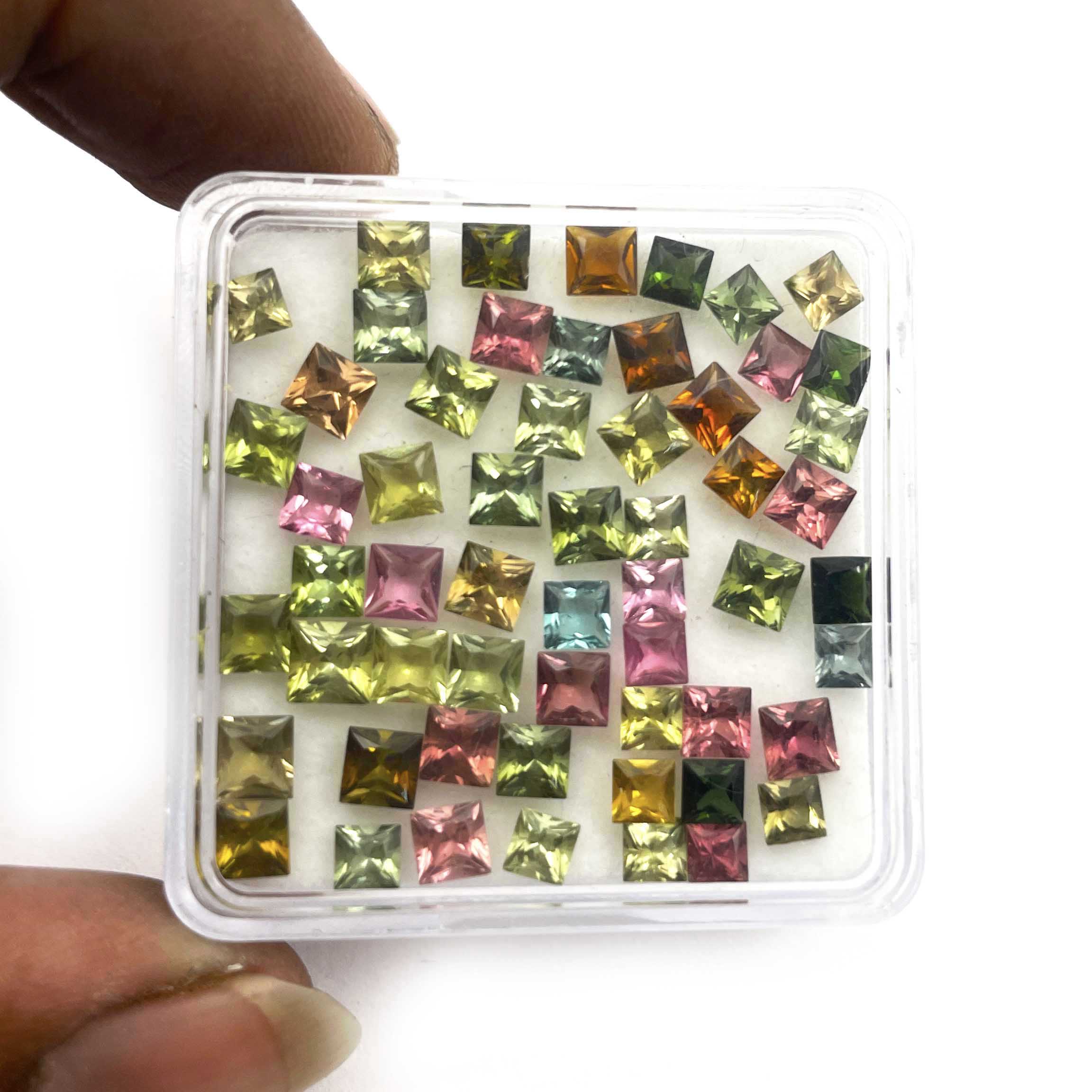 Natural Multi Tourmaline Square Cut Loose Gemstone Lot 34 Pcs 4 MM 10 CT