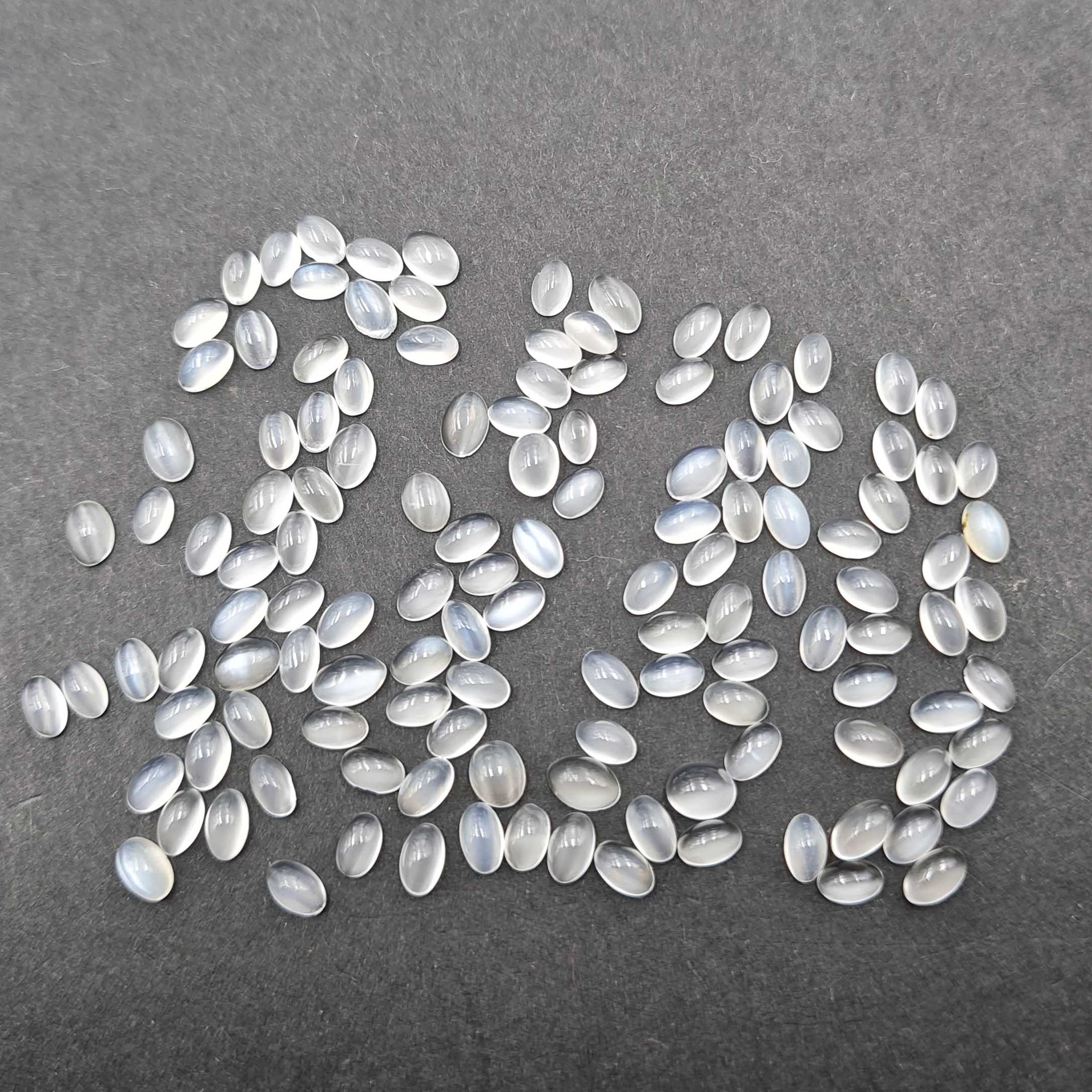 Natural White Moonstone Oval Cabochon Loose Gemstone Lot 320 Pcs 3*5 MM 95 CT