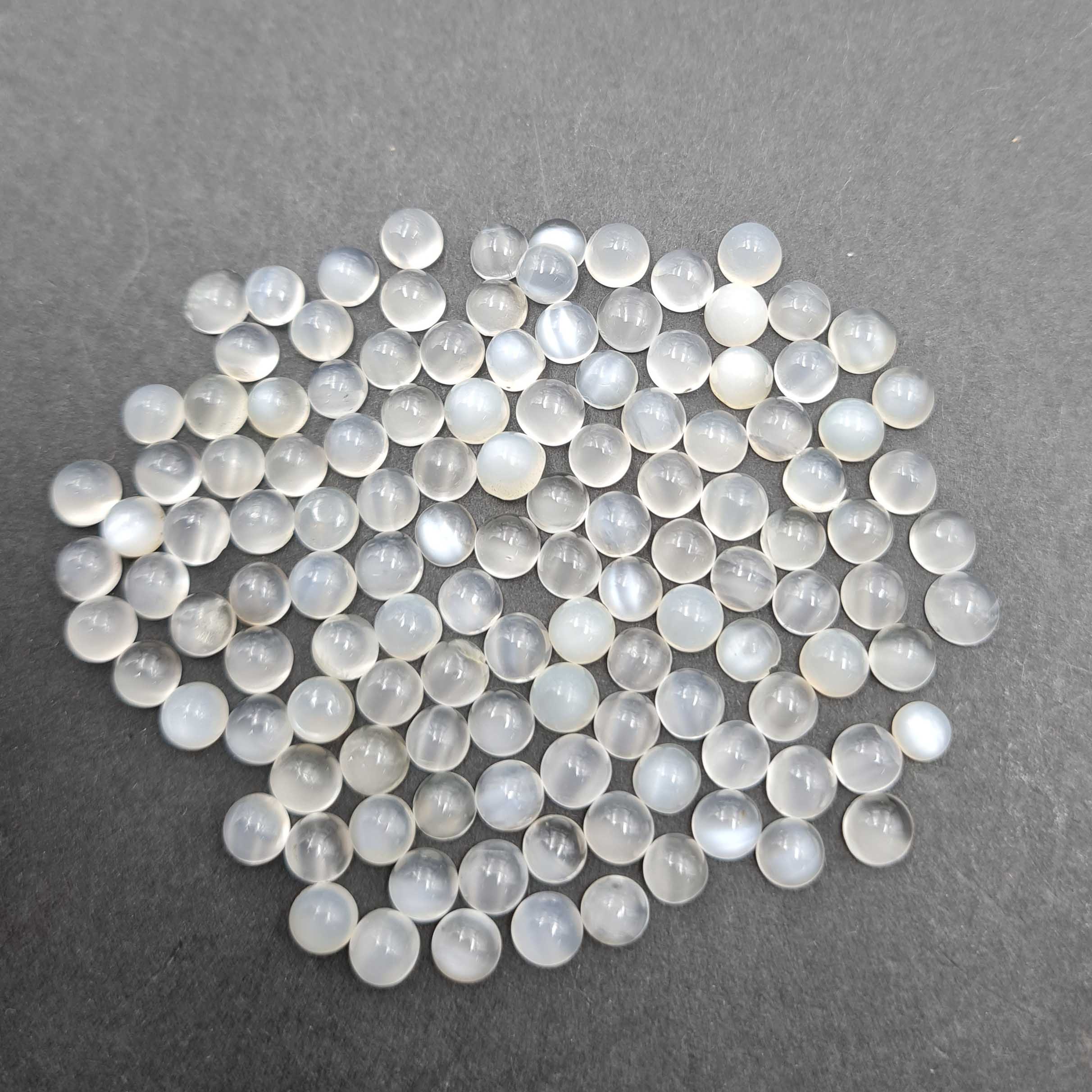 Natural White Moonstone Round Cabochon Loose Gemstone Lot 123 Pcs 5 MM 74 CT