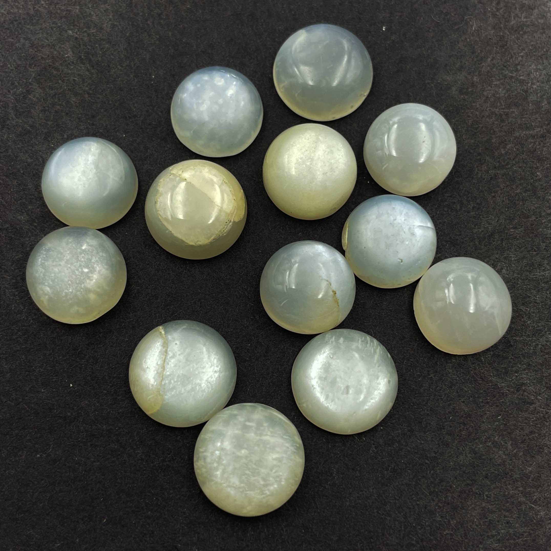 Natural White Moonstone Round Cabochon Loose Gemstone Lot 13 Pcs 11-12 MM 68 CT