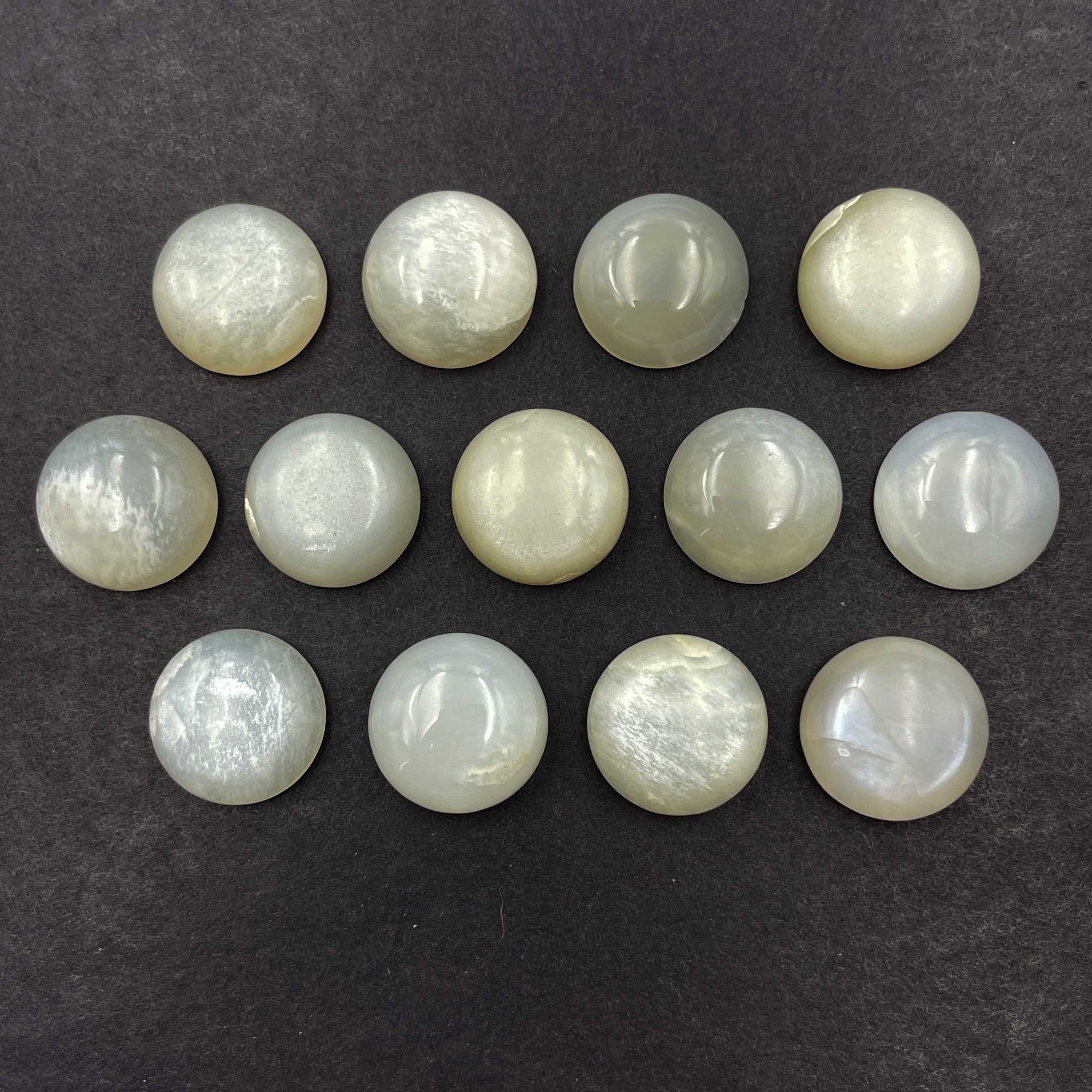 Natural White Moonstone Round Cabochon Loose Gemstone Lot 13 Pcs 11-12 MM 68 CT