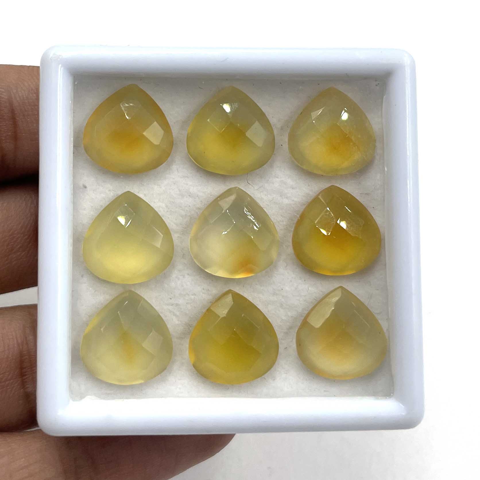 Home Other Gems Natural Yellow Chalcedony Heart Briolette Cut Gemstone Lot 10 Pcs 12 MM 48.80 CT
