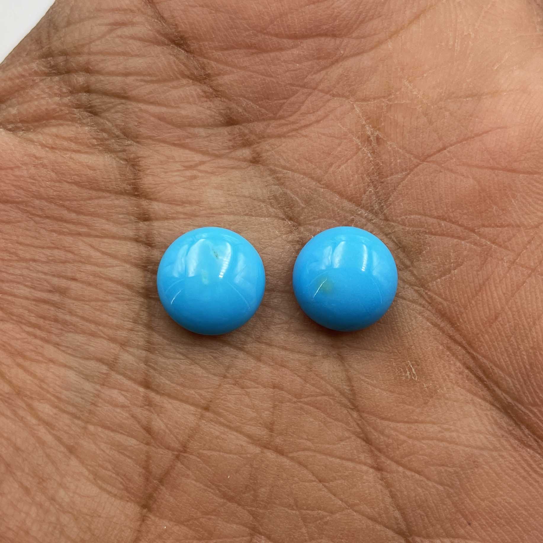 Sleeping Beauty Turquoise Round Bottom Drill Cabochon Stone 2 Pcs 10 MM 7.2 CT