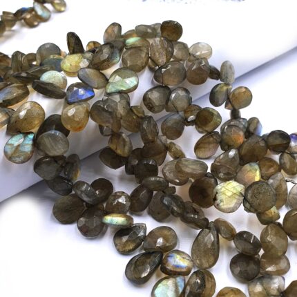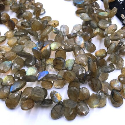 Natural Labradorite Multi Flash Faceted Pear Beads- 115 CT 9-12 MM 8 Inch