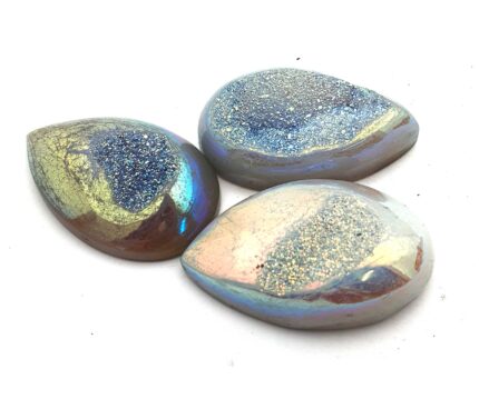 Natural Drusy Quartz Pear Cabochon White Color 3 Pcs 24*40 MM 176 CT
