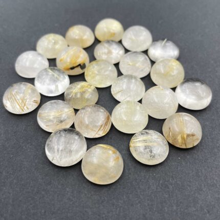 Natural Golden Rutile Round Cabochon Loose Gemstone Lot 24 Pcs 13 MM 177 CT
