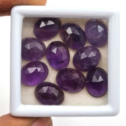 Natural Brazilian Amethyst Oval Checker Cut Stone Lot 11 Pcs 9×12 MM 46 CT
