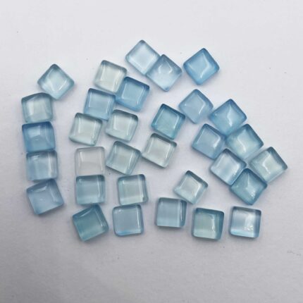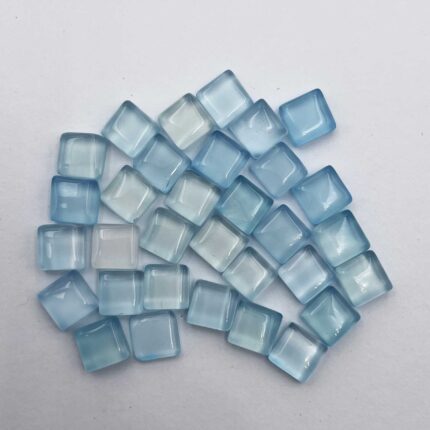 Natural Blue Chalcedony Square Cabochon Loose Gemstone Lot 32 Pcs 7 MM 60 CT