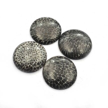 Natural Black Fossil Coral Round Cabochon lot 4 Pcs 21 MM 61 CT
